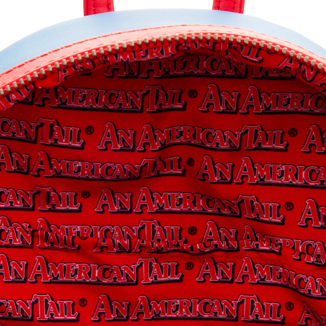 The Loungefly An American Tail Fievel Mini Backpack is made of vegan leather (polyurethane). Bag has adjustable shoulder straps and sturdy metal details. Additional features include applique and printed details. Take note of the coordinating inside lining.
