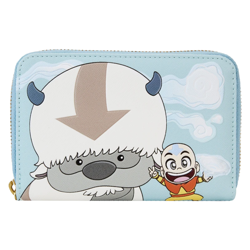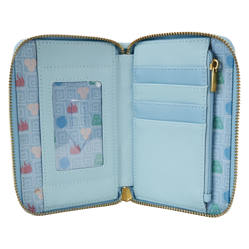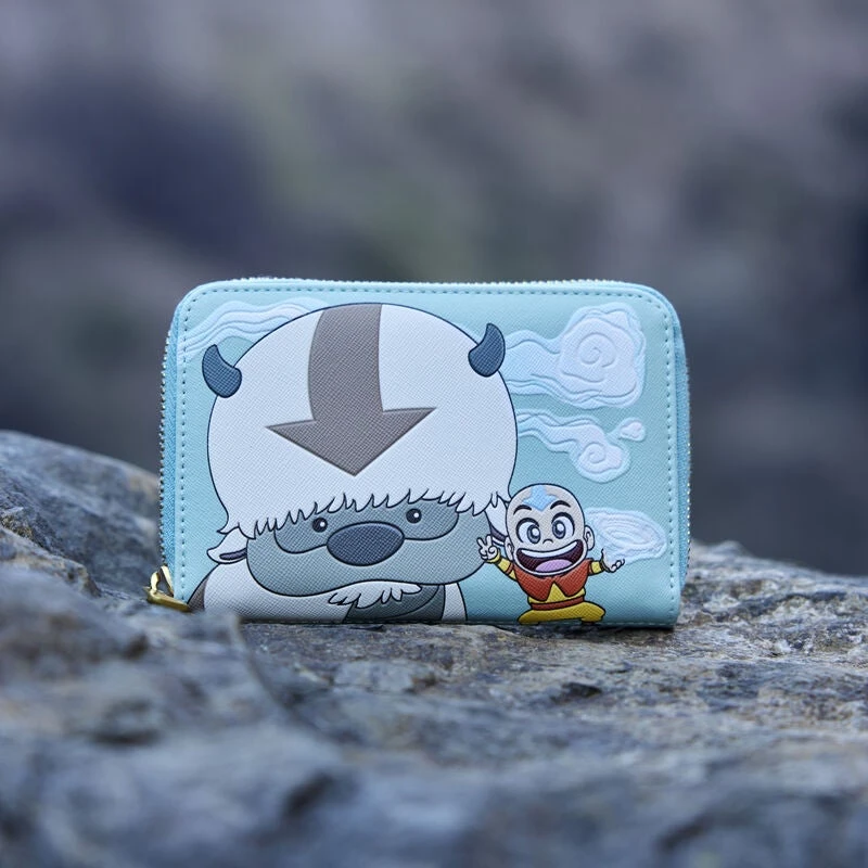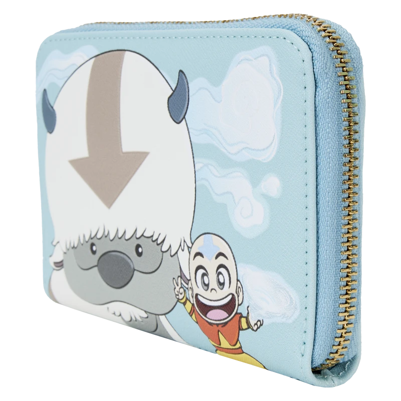 Swoosh! Give your day a lift with our Avatar: The Last Airbender Aang and Appa Zip-Around Wallet. This wallet is a great way to soar through your day! On the front, Appa and Aang appear as a print, among debossed clouds. On the back, the wind blows through Momo’s hair. Inside, you’ll find approximately four slots for holding cards and one clear slot for holding your ID. The die-cut image of an arrow, on the clear ID slot, adds a characteristic touch.
