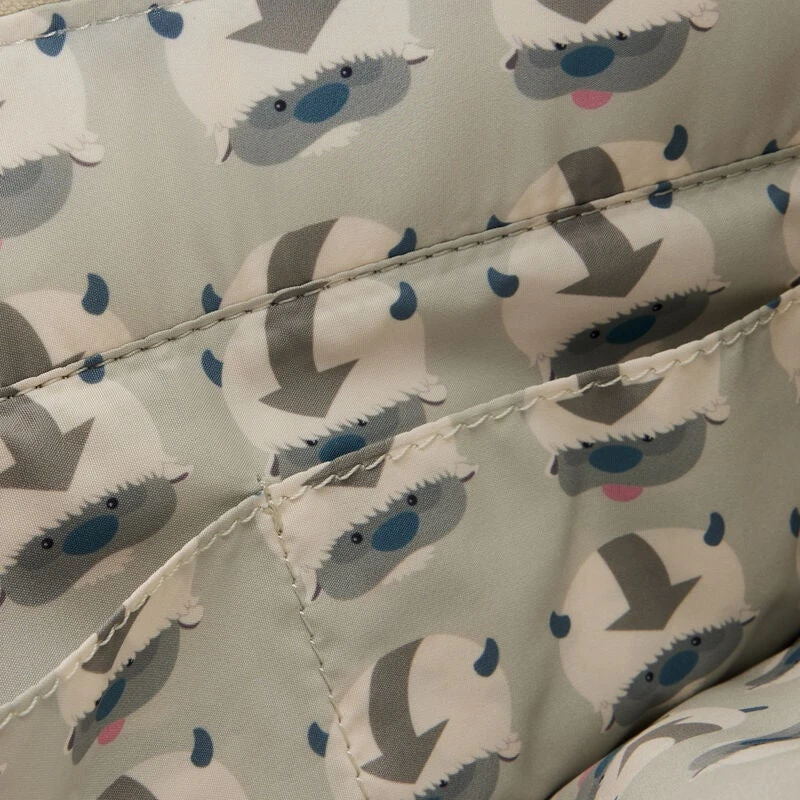 Swoosh! Give your day a lift with our Appa Cosplay Tote with Momo Charm. This tote bag, which is covered in soft, sherpa material, is a great way to soar through your day. On the front, Appa’s face comes to life in applique and embroidered detail. White sherpa material covers all sides of this bag, which includes a sturdy handle and a detachable and adjustable strap. On the back, you’ll find embroidered applique lettering that spells out, “Appa, Yip! Yip!” At the top, a zipper secures everything you’ll need for the day in this roomy tote. A vegan leather charm of Momo tops off the look!