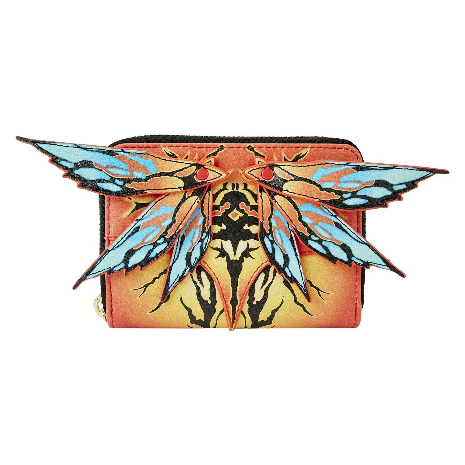 Bond with your own Toruk as a Loungefly Avatar Toruk Movable Wings Zip Around Wallet. Three sets of vibrantly colored wings swing open to reveal the full Toruk design in vibrant orange, black, and blue hues. This faux leather wallet also features debossing details that add a more realistic texture to the wings. On the back you’ll find an embroidered silhouette of Jake Sully riding his Toruk. Immerse yourself in the depths of the jungles and feel as though you’re soaring the skies of Pandora with this dynamic and eye-catching accessory. Wallet zips closed, has shiny gold-colored metal hardware, and features applique, debossed, and printed details. Take note of the coordinating pattern of the inside lining fabric.