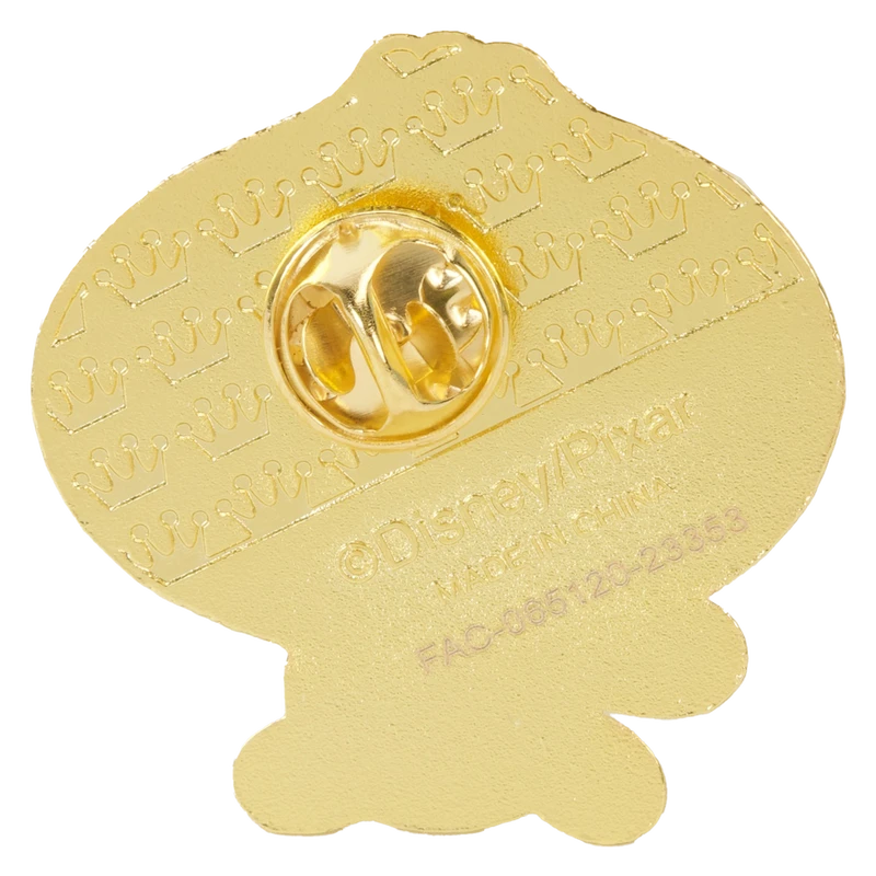 Enamel pins are approximately 1.5-inches tall and feature shiny gold hardware. The signature crown debossing appears on the back.