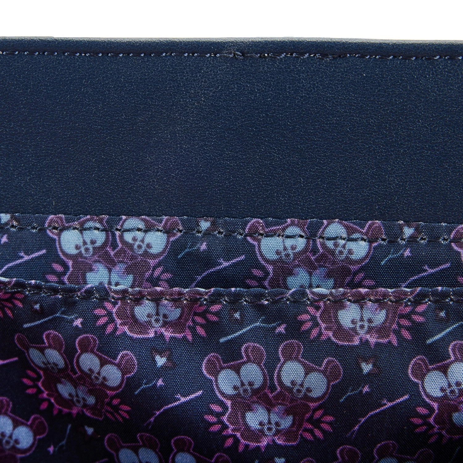 The Loungefly Disney-Pixar Brave Princess Castle Series Crossbody Bag is made of vegan leather (polyurethane). Bag has a chain and adjustable faux leather shoulder strap (detachable). Additional features include the following details: sturdy metal hardware, faux leather charm, foil, applique, and printed details. Notice the touching reunion scene with Merida’s mother in bear-form printed on the inside of the purse flap, along with the coordinating inside lining.
