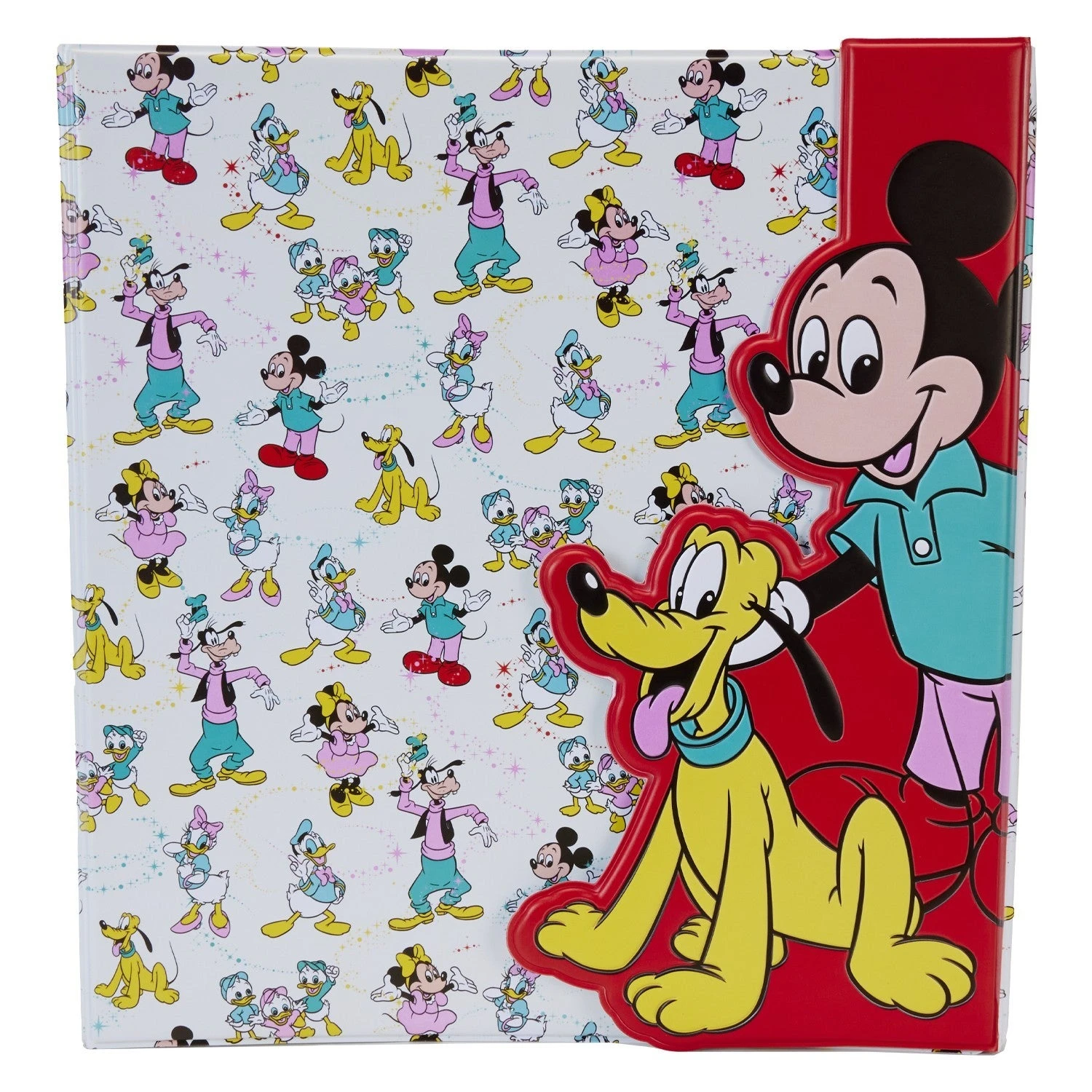 Create page-turning adventures with our D100 Mickey Mouse and Friends Binder. Mickey Mouse and Pluto greet you on a die-cut closure tab. The vegan leather journal also features an all-over-print of Mickey Mouse, Minnie Mouse, Donald Duck, Daisy Duck, Pluto, and Goofy—and they all look ready to celebrate. This three-ring binder is perfect for adding folders or loose-leaf paper, filled with notes. Interior flap pockets are perfect for securing important reminders, and everything stays put with a Velcro closure tab. Make organizing a reason to celebrate with this fun-filled binder.