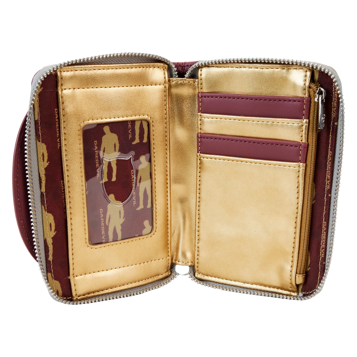 Looking for a new lawyer? Enlist the vigilante justice of Hell’s Kitchen with this zip around wallet! Inspired by Daredevil’s look in Marvel Studios’ She-Hulk: Attorney at Law, this accessory uses metallic applique and debossing to recreate his mask. This wallet is sure to save any outing from disaster and will protect your belongings as you launch into your next mission.