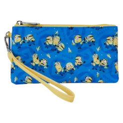 Banana! Our Minions wristlet wallet is ready for adventures. Yellow trim adds a pop of color contrast with the blue field, against which a print of the Minions unfolds. Behind the Minions, in a darker blue pattern, you might discover the “Gru” symbol and the word “Bello” as a motif. Inside, you’ll find several convenient slots and pouches for storing valuables safely and organizing smaller items on your journeys. Secure just what you need for the day to cause a bit of good-natured mischief in style.