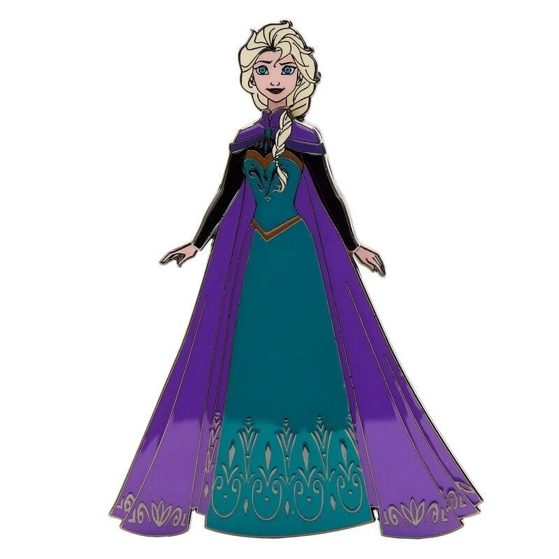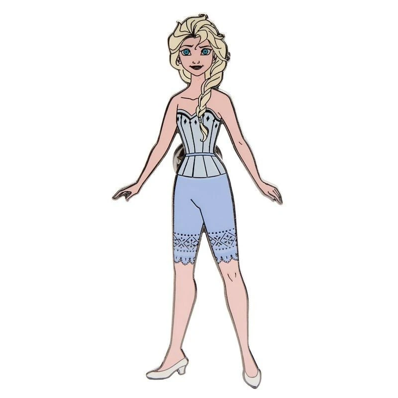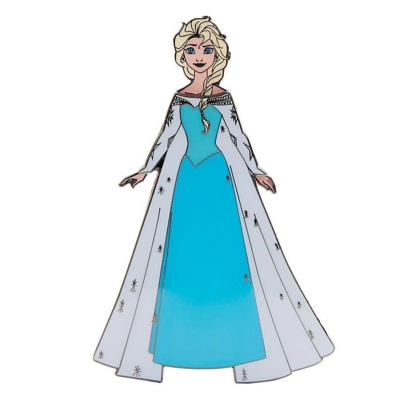 Build a shimmering wardrobe for Elsa with this Loungefly Disney Elsa Paper Dolls Magnetic Pin Set. Some dazzling options are right within Elsa’s reach, including a dress of green and purple, a sparkling aqua blue gown with a light cape, and an all-white gown. The base for this set has Elsa dressed in super cute modest undergarments, and you can change up her look with one of three magnetized dresses that fit perfectly and securely in place. With so many options, you can create versatile looks in classic Disney style—or transform everyday outings into enchanting adventures.