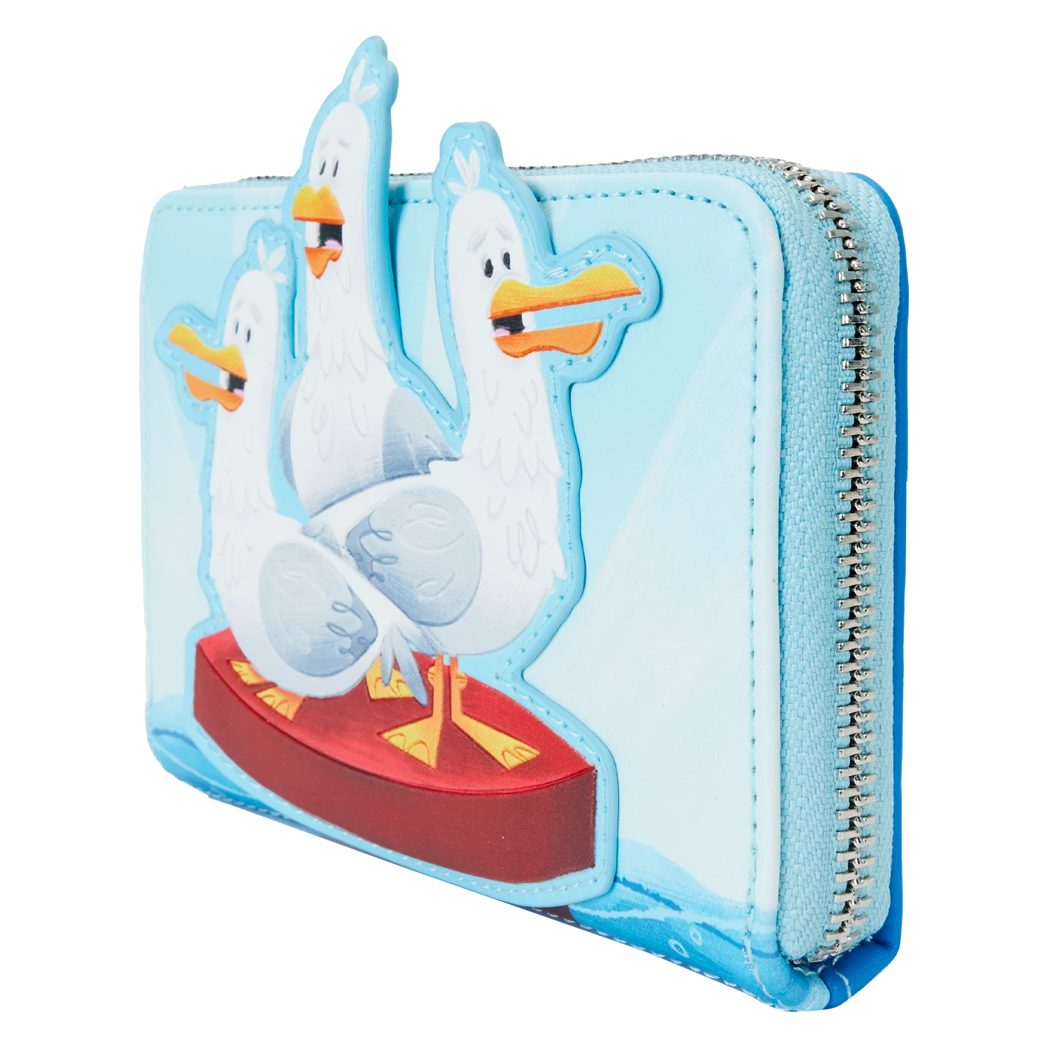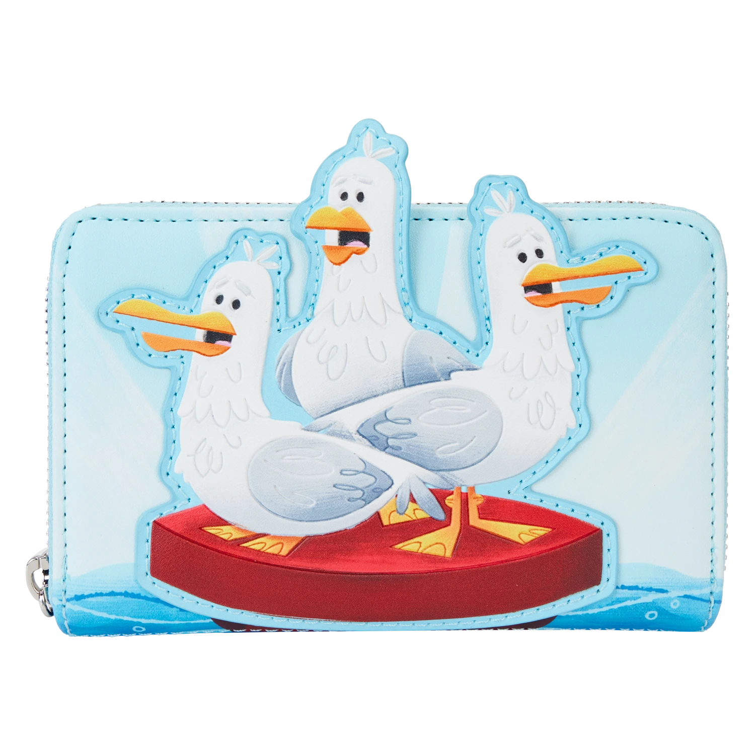 It’s every creature for themselves on this zip around wallet! Perched on a buoy, a flock of hungry seagulls calls for their next meal. On the back, a crab snaps its claws in defense next to the seagulls’ signature catchphrase. This wallet makes a humorous addition to any outing and will keep your belongings safe from harm.