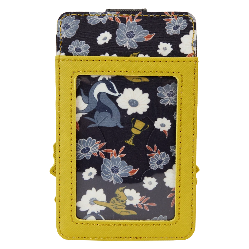 Stop and smell the flowers while representing your House! Our Harry Potter Hufflepuff House Tattoo Card Holder is perfect for growing your love of all things Harry Potter. On the front of this yellow-colored card holder, an applique Hufflepuff symbol of the badger appears among white and dark field flowers. A banner, with “Hufflepuff” printed on it, appears below. This applique serves as the flap, which snaps closed to secure cards. Foil details add an elevated touch. There are approximately four slots for holding cards, and on the back, you’ll find one clear slot for displaying your ID.