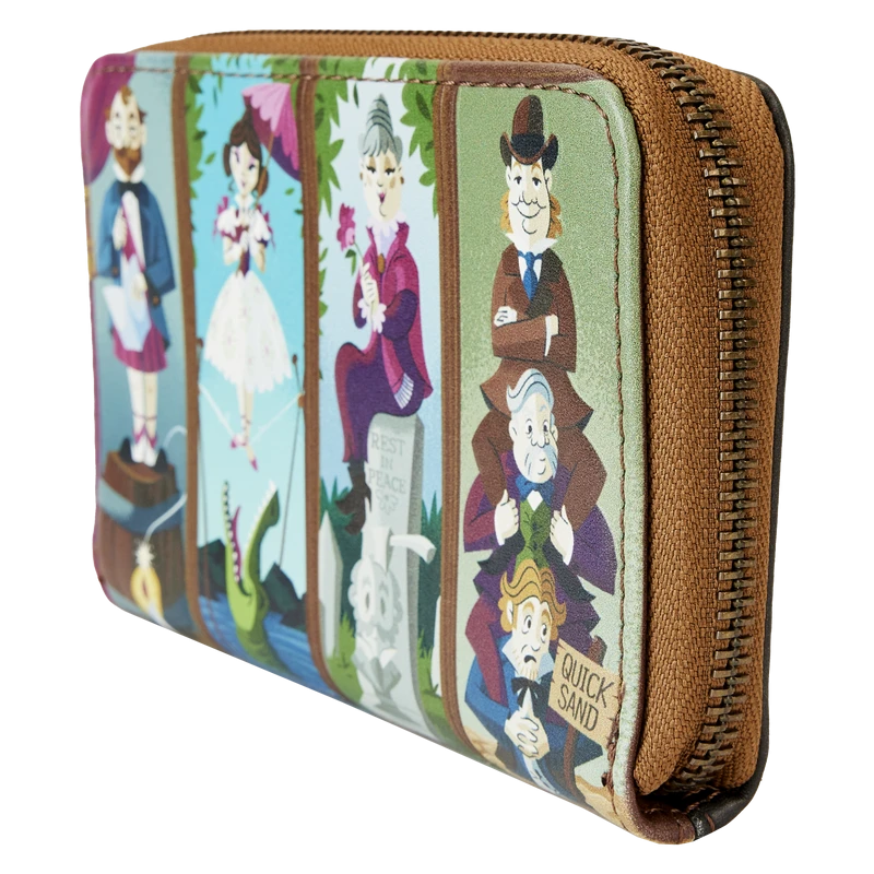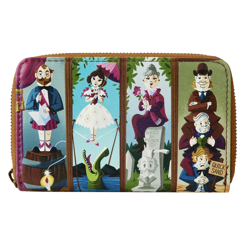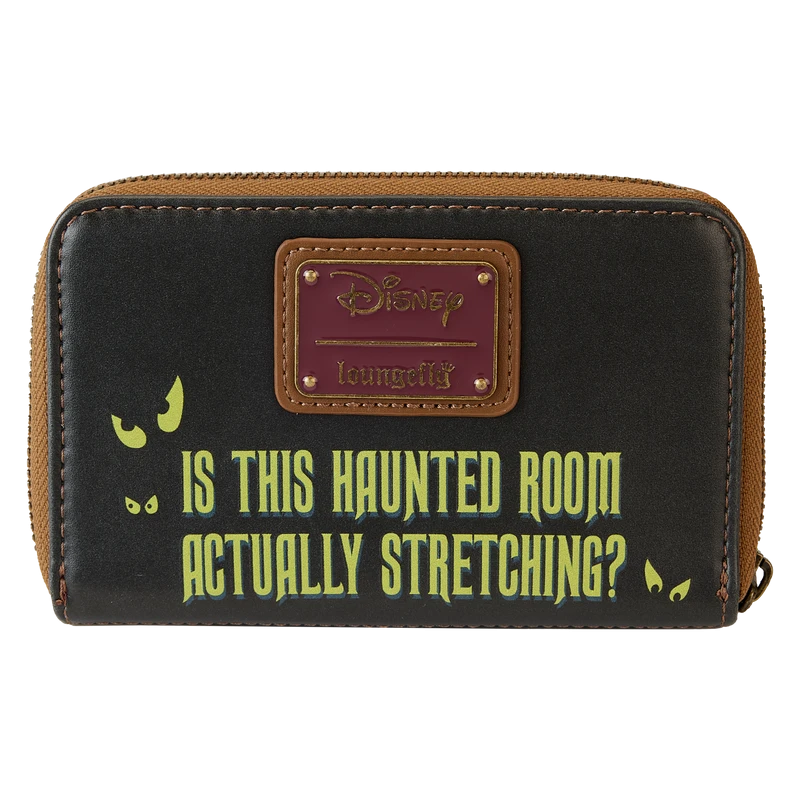 Step into the gallery room for a bit of a stretch before the Doom Buggy arrives. Haunt your favorite venues in style with our Loungefly Disney Haunted Mansion Portraits Zip Around Wallet. The front of this accessory recalls the wood-paneled portrait room from the iconic Disney attraction.The embossed applique figures in the paintings stand above a sinister fate that awaits each one, including quicksand, the grave, an alligator, and a keg of dynamite. On the back, eerie green letters ask, “Is this haunted room actually stretching?” Inside, you’ll find 4 slots for holding cards and 1 clear slot for displaying your ID. A die-cut shape of a tombstone adds a frightfully fun touch. Wherever your tour begins, be a vision in the center of the room.