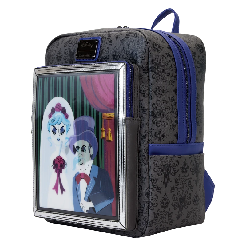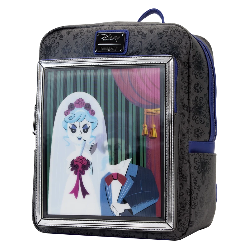 ‘Til death do us part! The Haunted Mansion Black Widow Bride Lenticular Mini Backpack paints a portrait of marital bliss… or does it? On the front zipper pocket, a framed photograph shows a bride and her groom. Tilt the bag back and forth to get a menacing look at the full picture. Up above, the iconic Haunted Mansion wallpaper design covers the rest of the bag while a gargoyle appears on the back. Whether you hear wedding bells in your future or are waiting to catch the bride’s bouquet, this mini backpack is a fun tribute for theme park lovers everywhere.
