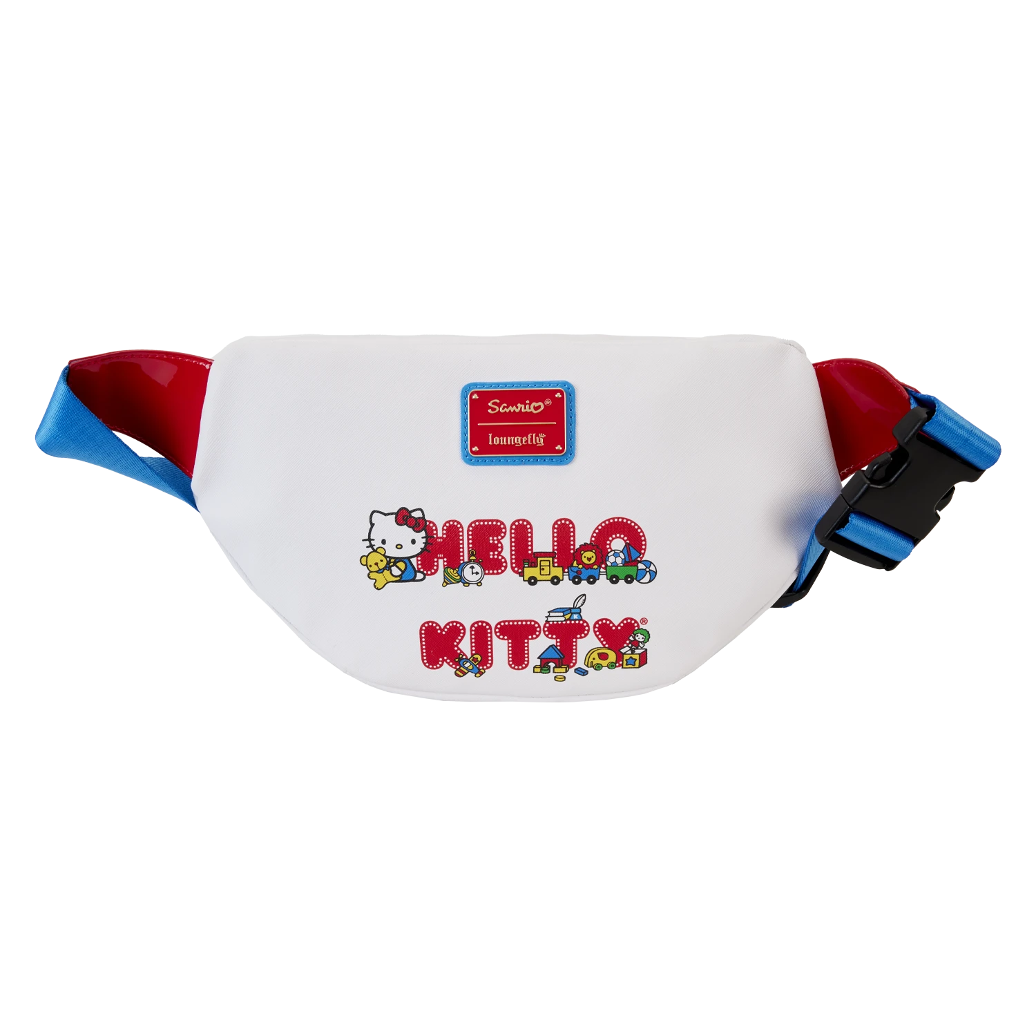 Say hello to a friend that’s wearing a bow! Share smiles and celebrate wherever you go with our Hello Kitty 50th Anniversary Cosplay Belt Bag. This handy belt bag features Hello Kitty’s adorable face, with applique ears, embroidered facial features, and a bright, shiny red applique bow. Yellow and blue accents add a pop of bold color and bright cheer. On the back, Hello Kitty makes an encore appearance as a printed image, and she’s holding a teddy bear. Colorful, adjustable straps allow you to wear the bag around your waist or as a sling across the shoulders. The words “Hello Kitty” also appear in red print, with various toys peeking out between the letters. Secure your valuables for the day and take off on fun adventures with this charming accessory.