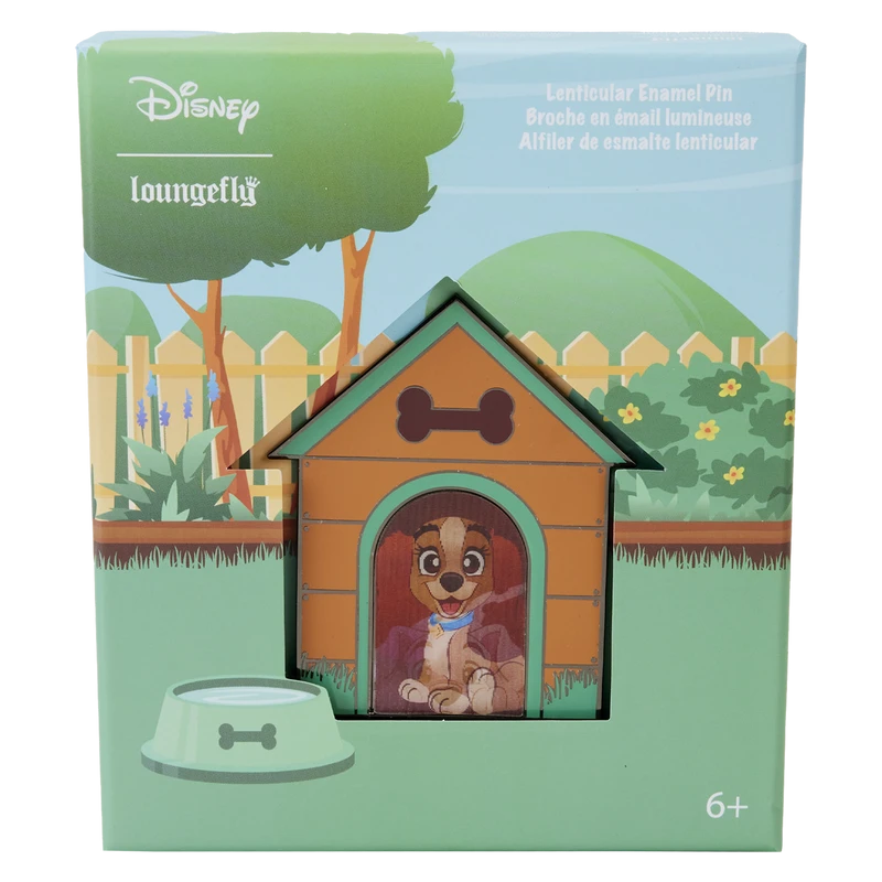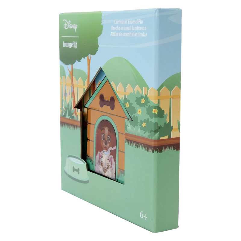 Paws to create a picture-perfect moment in your pin collection! Bring home the I Heart Disney Dogs Triple Lenticular 3-Inch Collector Box Pin. This enamel pin is shaped like an adorable doghouse, with a bone above the doorframe. Through lenticular details, a different Disney Dog appears in the doorframe, including Lady, Copper, and a Dalmatian puppy. Embark on a new pet project to make this pin the center of your display.