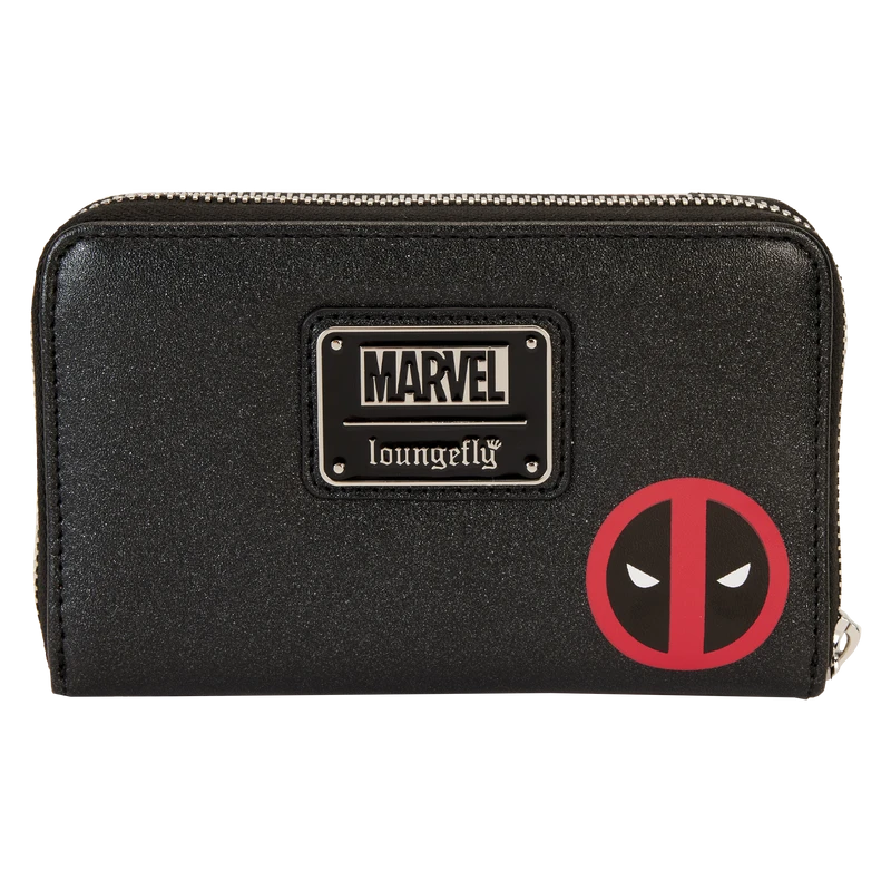 The Metallic Deadpool Cosplay Mini Backpack is made of vegan leather (polyurethane). Bag has adjustable shoulder straps and shiny silver hardware. Additional features include applique, metallic, glitter, debossed, and printed details. Take note of the coordinating inside lining.