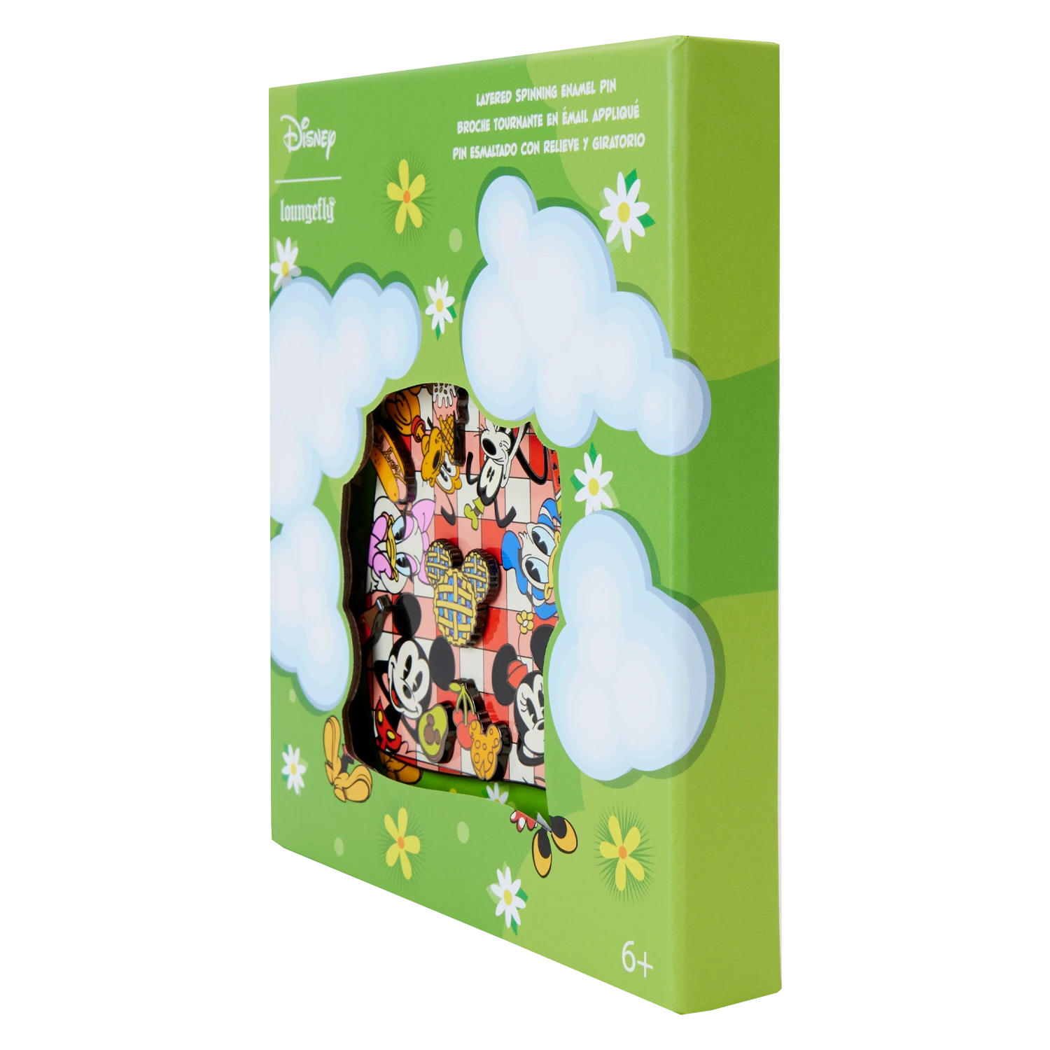 Life’s a picnic when you’re with your pals! Spend a sunny day in the countryside with the Loungefly Mickey and Friends Picnic 3” Collector Box Pin. Laying down on a picnic blanket, Mickey, Minnie, Donald, Goofy, Pluto, and Daisy look up at the sky to gaze at the clouds. Look closely and you’ll find all sorts of snacks inspired by Mickey’s iconic silhouette, including a berry pie that spins! This enamel pin makes a stylish addition to any outfit or bag and is a real treat for any Disney fan.