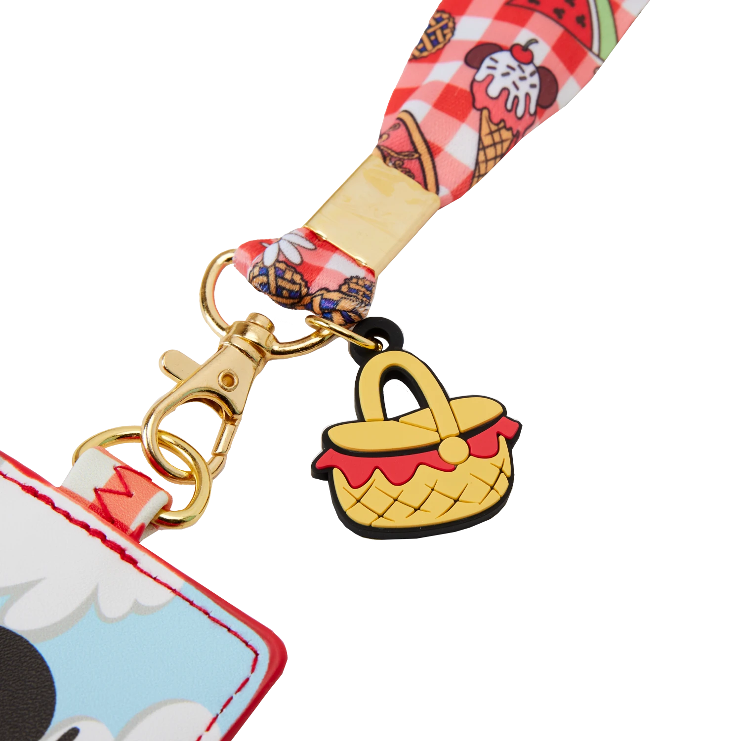 Life’s a picnic when you’re with your pals! Spend a day in the sunny countryside with the Loungefly Mickey and Friends Picnic Lanyard with Card Holder. On the front of the card holder, Minnie gives Mickey a smooch. On the back, a woven basket design frames a clear slot for holding ID. The printed lanyard strap shows an all-over print of Mickey-inspired snacks on a gingham blanket, and a rubber charm of a picnic basket completes the scene. This accessory makes a stylish addition to any outing and has plenty of room to pack your essentials.
