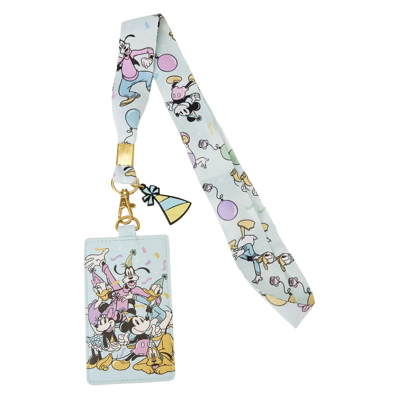 Get the confetti ready! Join in on the festivities with our Loungefly Disney Mickey Mouse and Friends Birthday Celebration Lanyard with Card Holder. On the front, you’ll see that the whole gang has gathered, with their part hats on, including Goofy, Mickey Mouse, Minnie Mouse, Donald Duck, Daisy Duck, and Pluto. On the reverse side of the card holder, there’s a clear slot for displaying your ID. A silicone charm of a party hat tops off the look, and the printed lanyard strap carries a celebratory motif of balloons, confetti, and Mickey and friends. Take the party with you wherever you go with this fun accessory.