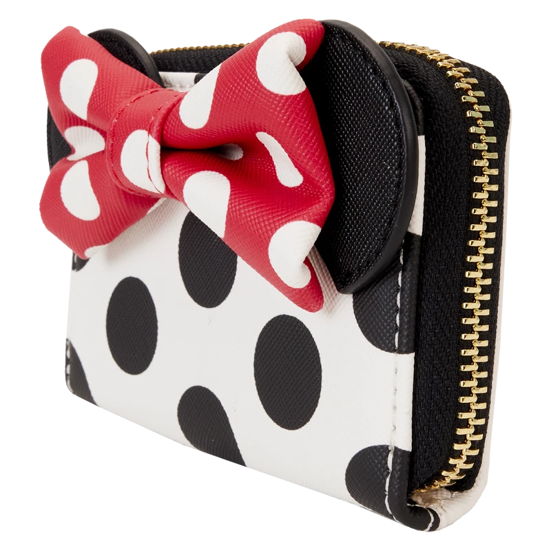 Our dotted line has a signature touch! The Minnie Mouse Rocks the Dots Accordion Card Holder is a fresh and fabulous take on a classic style. The all-over-print of black dots against a white background adds a fashionable touch, while the 3D bow in red adds a splash of color. Ears, characteristic of Minnie Mouse, rise up over the top in applique detail. On the back, you’ll find an embossed, vintage print of Minnie Mouse in black and white, and she’s dancing! Inside, you’ll find plenty of slots for securing and organizing important cards. Arrive on the dot and in style wherever you go.