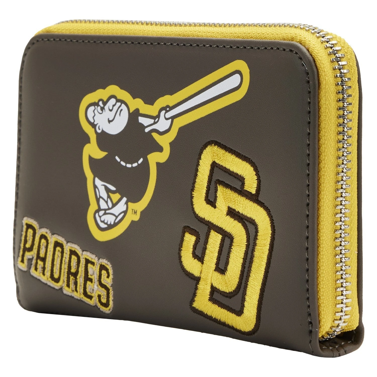 Show your team spirit with an accessory that will knock your Loungefly collection out of the park! The MLB SD Padres Patches Zip Around Wallet is a home run for any Padres fan. This wallet features sporty embroidered patches against a black background. With 4 slots for holding cards and a clear slot to hold your ID, this accessory provides a stylish way to carry your important items as you cheer from the sidelines.