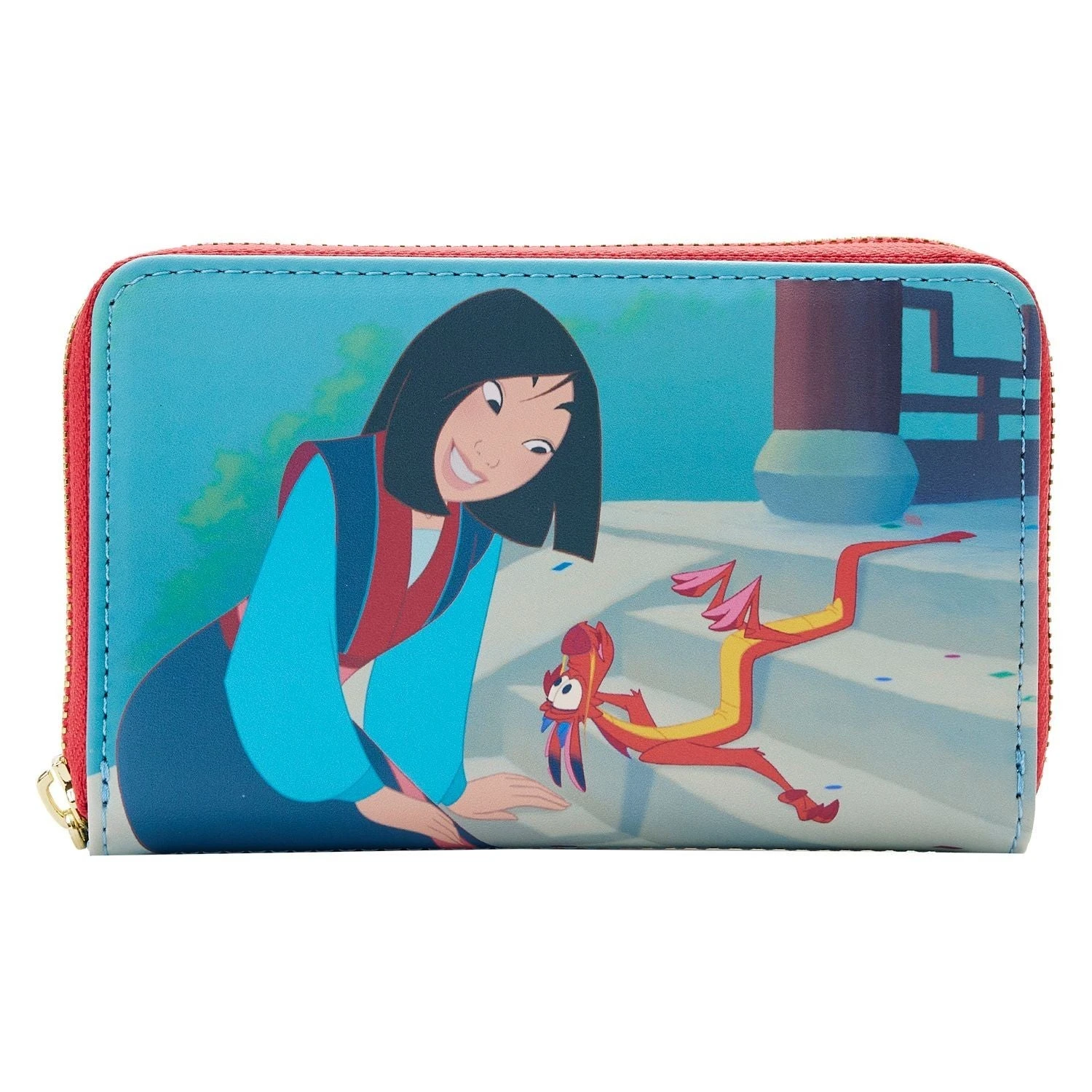 Let journeys blossom with this Loungefly Mulan Princess Scene Zip Around Wallet. Each side of this wallet is covered in original art depicting key moments from Mulan. On the front, youβll find Mulan and Mushu enjoying a playful moment. On the back, Mulan is in disguise, riding Khan, her horse. Inside, there are 4 slots for holding cards, and 1 clear slot for holding your ID. Itβs the perfect accessory for turning everyday moments into scene-worthy adventures.