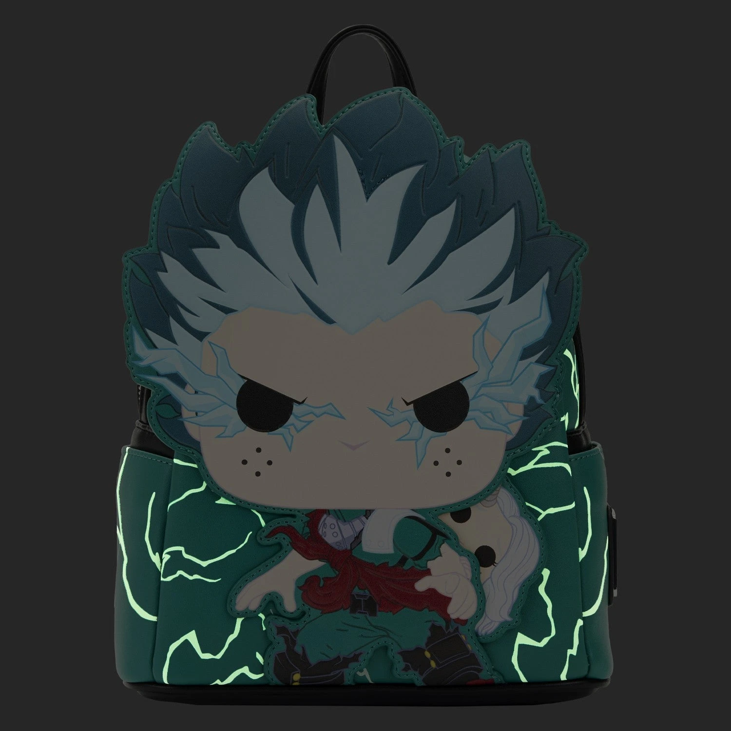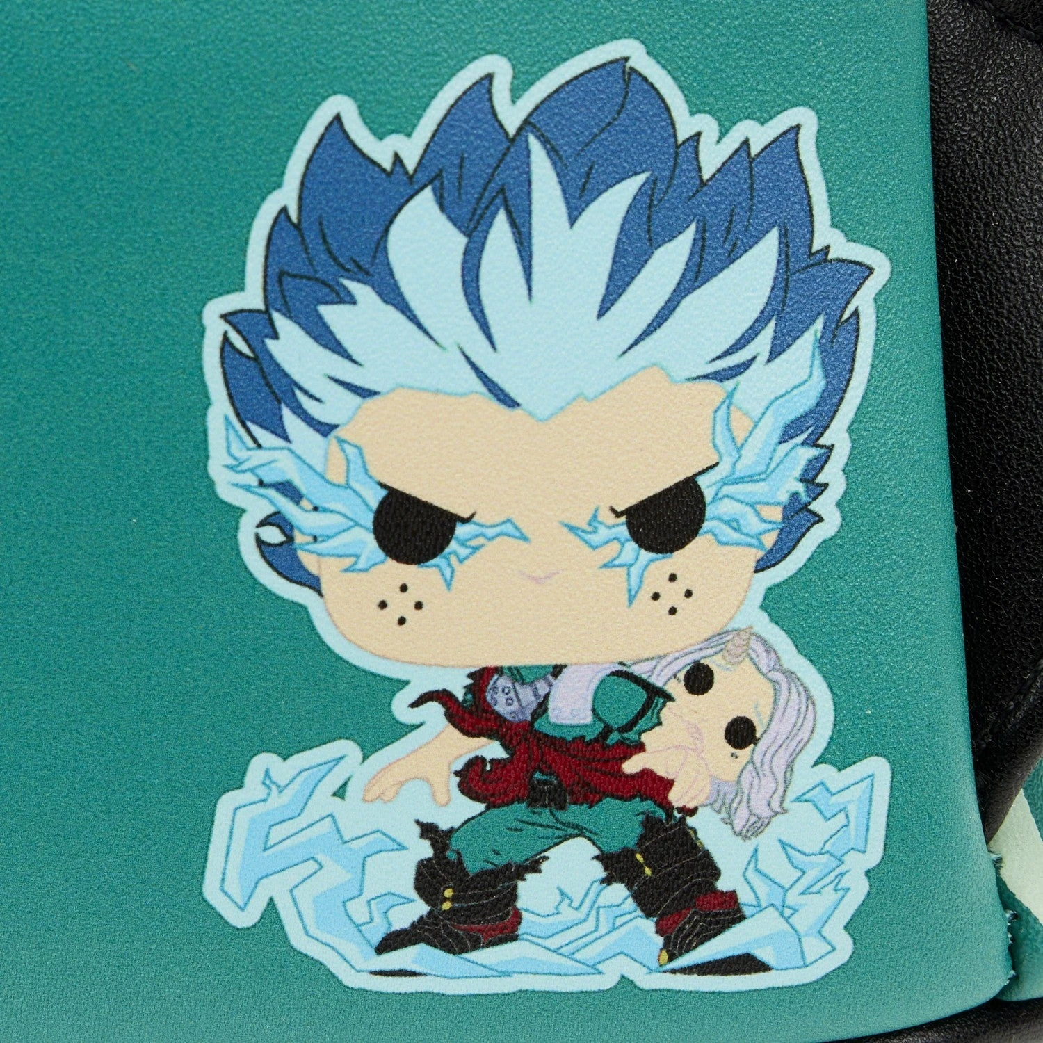 Smash it! Carry this Funko Pop! by LoungeflyMy Hero Academia Deku Glow Infinity Cosplay Mini Backpack to win the day. Whether you’re heading off to hero training or just packing a few things to power through, this backpack allows you to never give up, Deku style. On the front, Deku comes to life in applique detail, his hair rising up over the top. Behind him, Eri gives him strength, and she moves—popping in an out of view as a moveable applique! Flashes of lightning surround him as he uses One for All, and the details wrap around the side pockets. In the dark, the light blue lightning glows. On the back, Deku and Eri make an encore appearance. It’s the perfect accessory for packing everything a Pro Hero needs—or for transforming everyday outings into spectacular adventures.