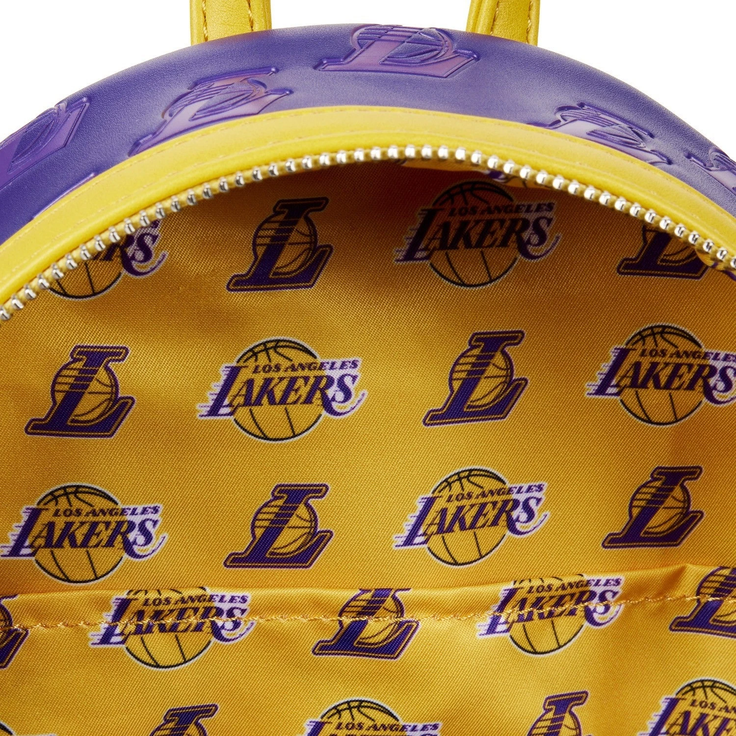 The Loungefly NBA LA Lakers Debossed Logo Mini Backpack is made of vegan leather (polyurethane). Bag has adjustable shoulder straps, sturdy metal hardware, and features: embroidered, debossed, and printed details. Take note of the coordinating design of the inside lining fabric.