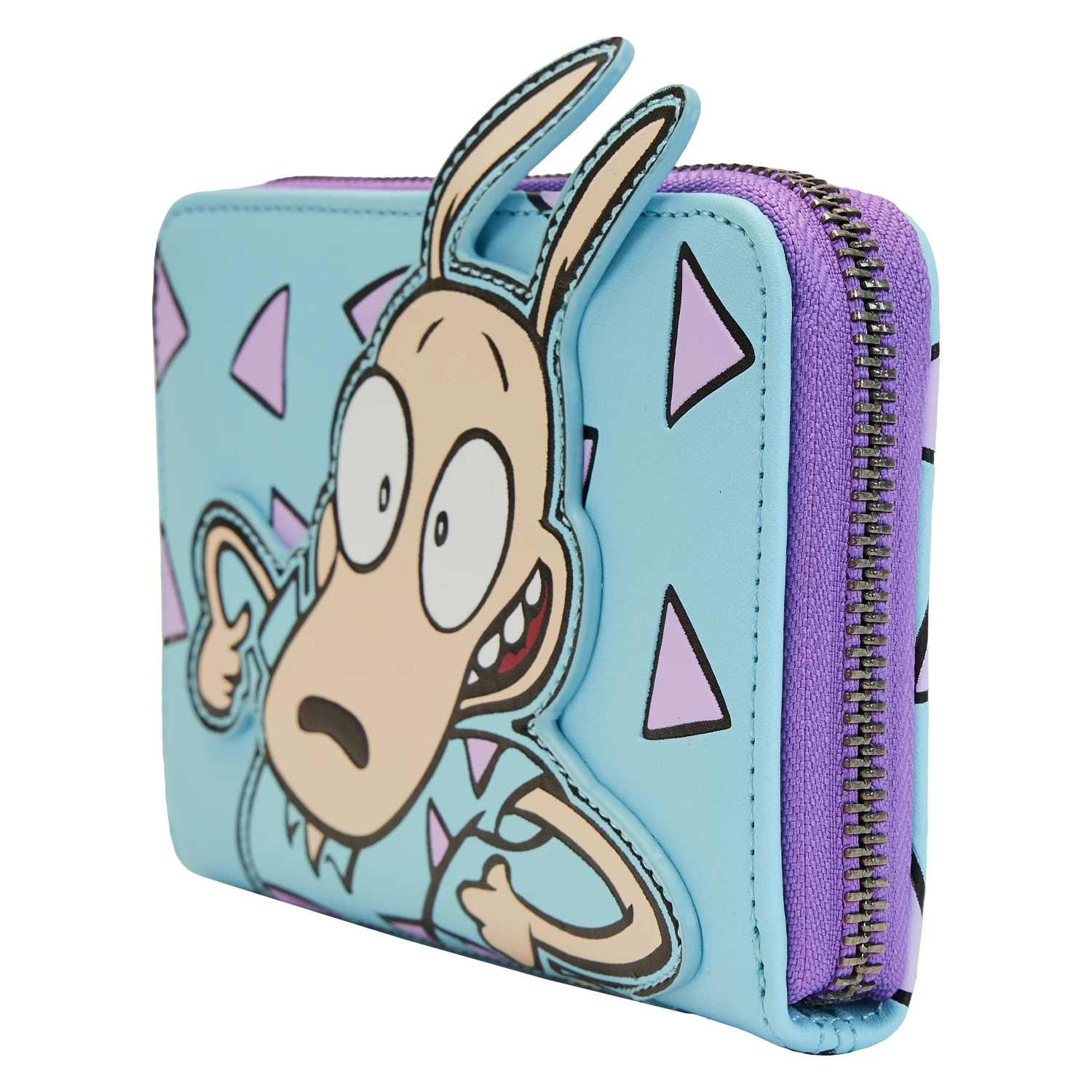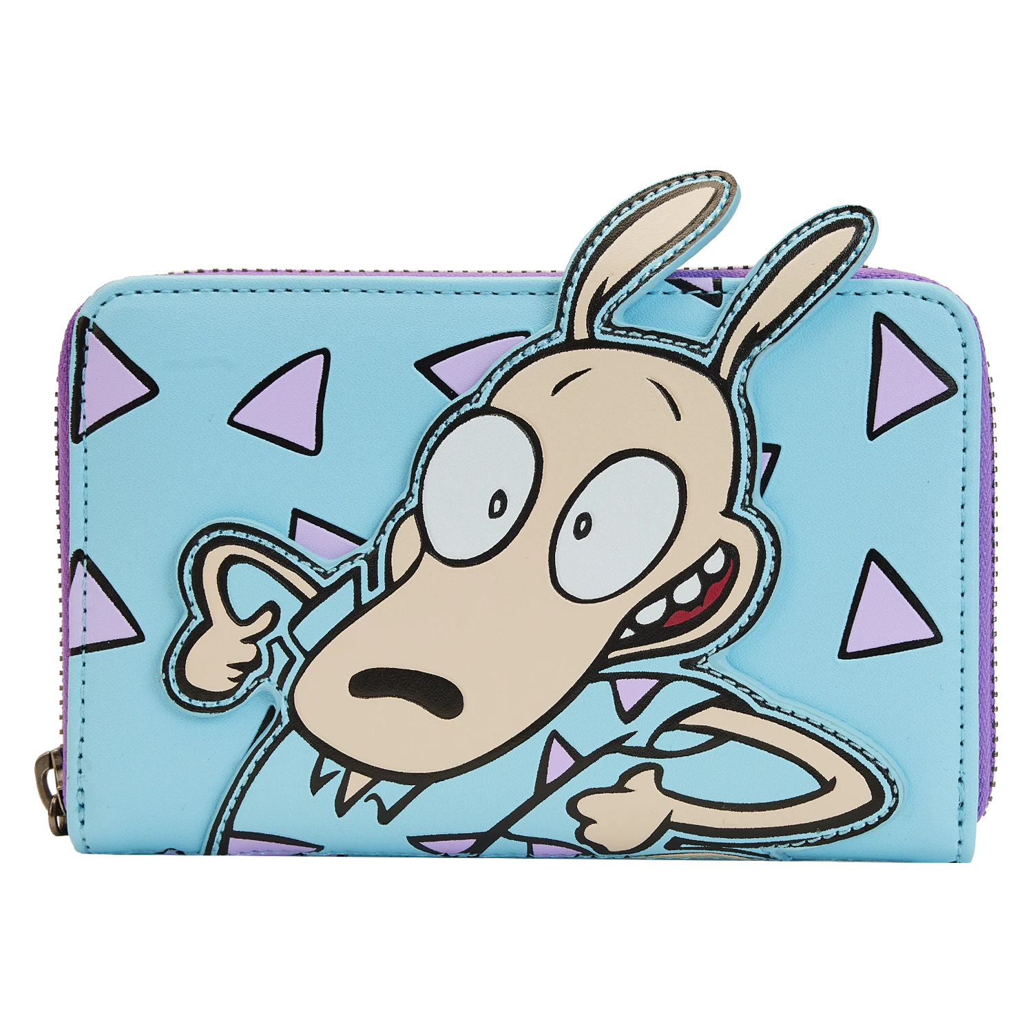 What a hoot! Head to O-Town in style with our Loungefly Nickelodeon Rocko’s Modern Life Zip Around Wallet. Rocko, the Australian wallaby in this classic animated series, looks like he’s ready for an adventure, coming to life in applique detail. On the back, you’ll find his faithful pet, Spunky. An all-over-motif of purple triangles, over a blue background, pulls together a modern style in keeping with the theme of the classic cartoon. Inside, you’ll find 5 slots for holding cards and 1 clear slot for displaying your ID. A die-cut shape of a triangle, on the clear slot, adds an extra fun detail. It’s the perfect accessory for a day of exploring new and exciting places—or for seeking calm and relaxing picnic spots.