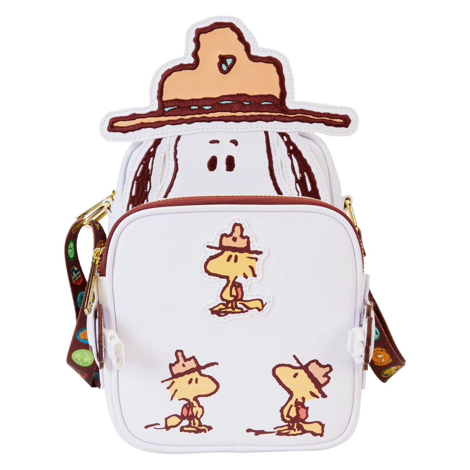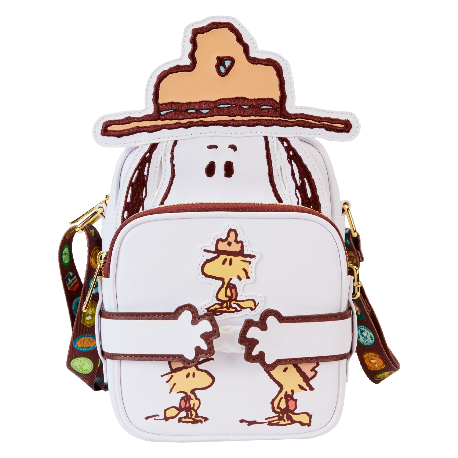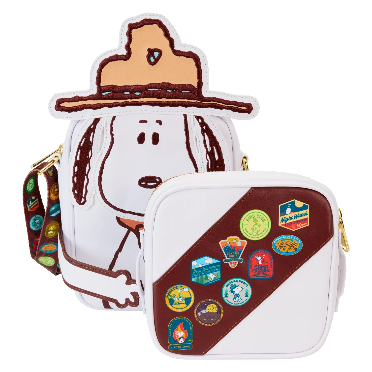 Scouting far and wide for the perfect PEANUTS gear? Look no further than this handy Crossbuddies® bag in white, which features Snoopy, dressed as a Beagle Scouts leader. His applique hat rises up over the top of the bag, and his face comes to life with embroidered detail. Secure everything you hold dear with this watchful leader. Snoopy’s applique arms cover a belt that snaps around a removable and reversible coin bag, so you can switch up your look. In one view, Snoopy hugs cuddly, feathered Beagle Scouts, and on the other side, there’s a brown sash with prints of badges. The adjustable strap also carries a motif of Beagle Scouts badges. Head for camp or other adventures in style.