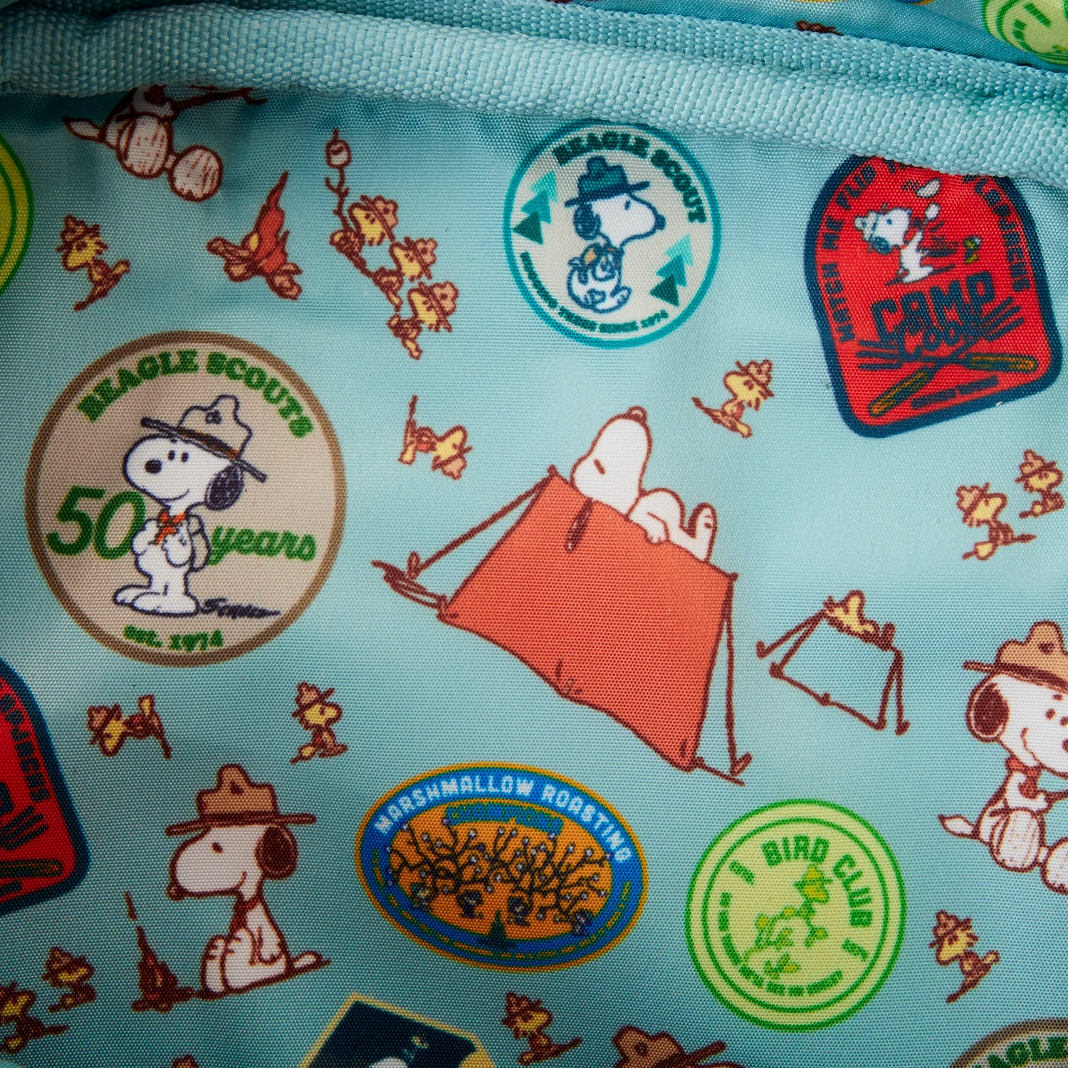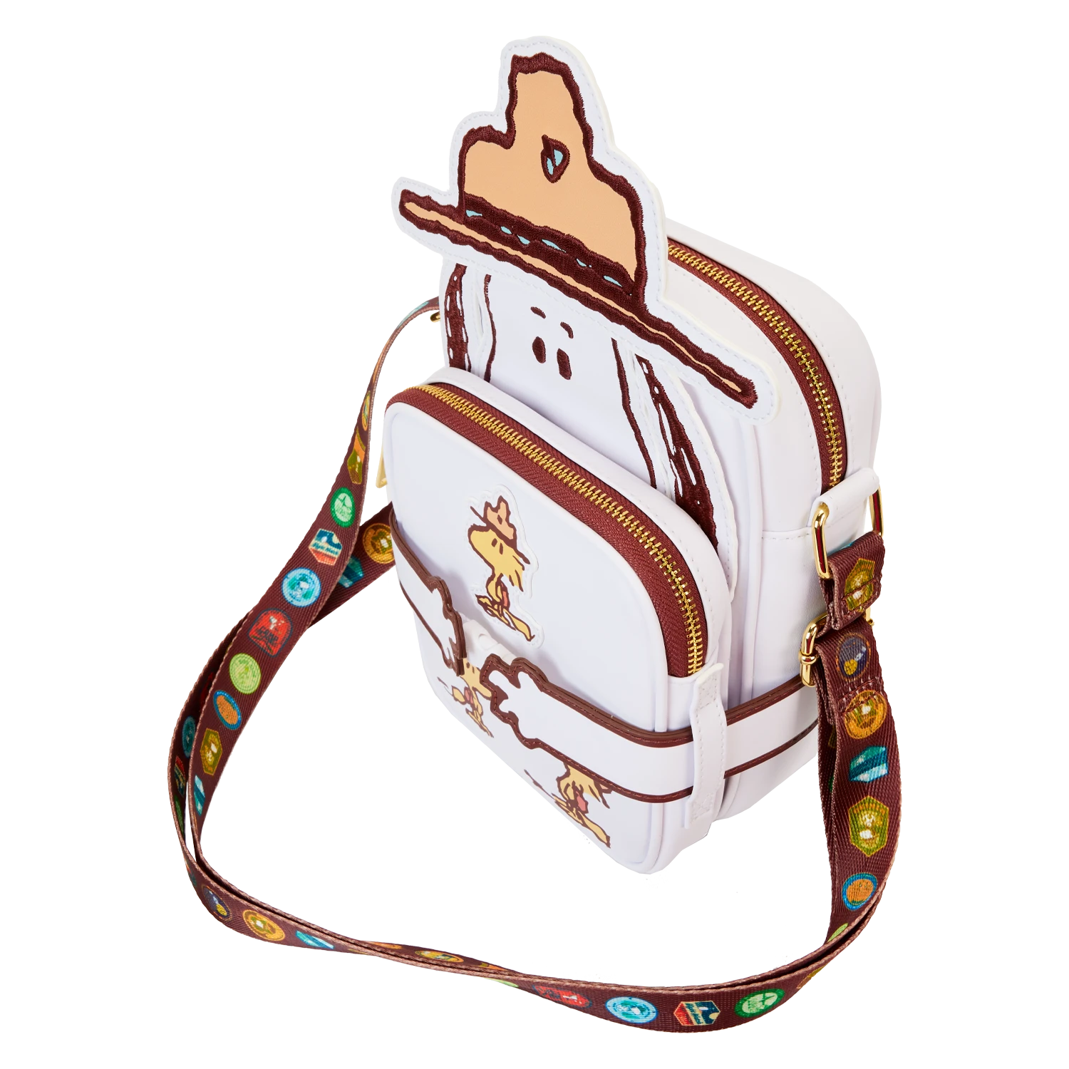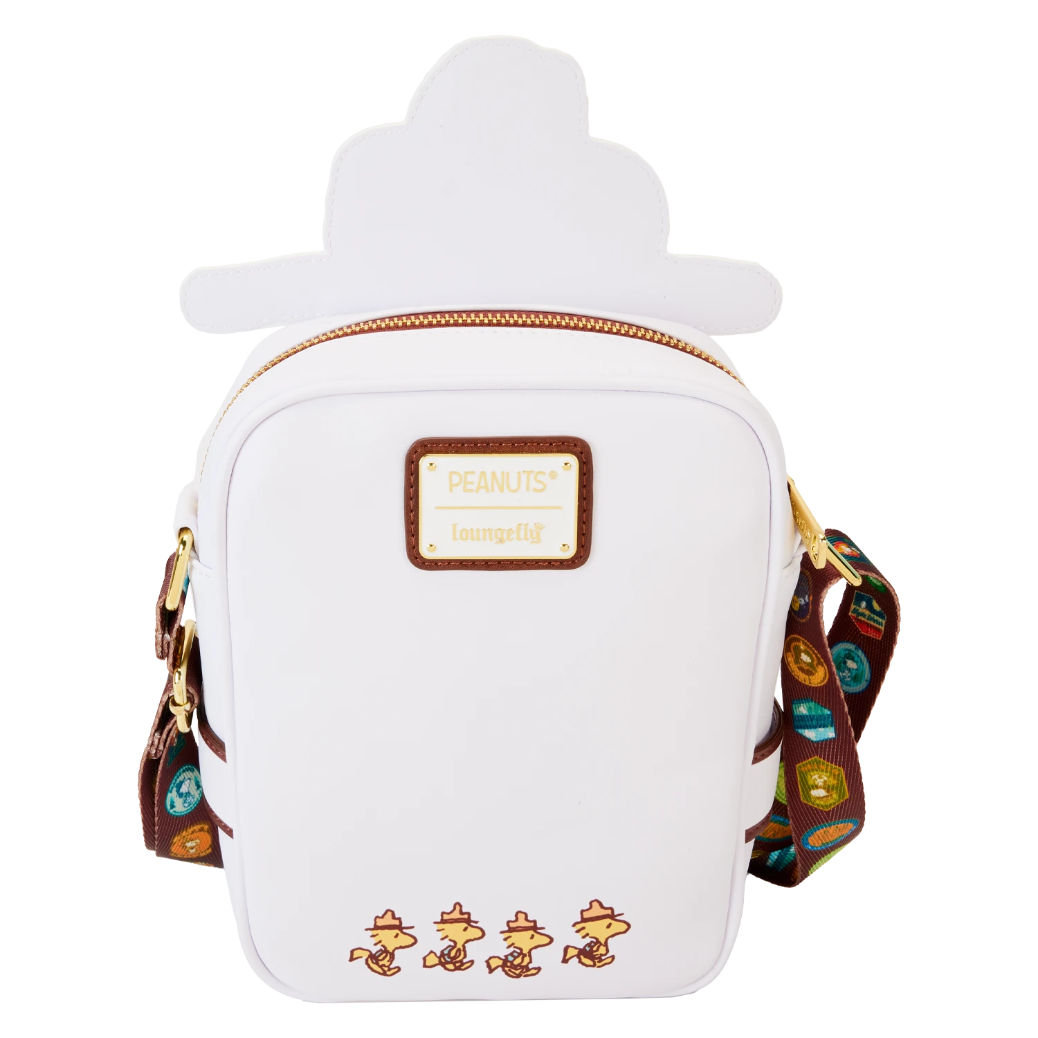 Scouting far and wide for the perfect PEANUTS gear? Look no further than this handy Crossbuddies® bag in white, which features Snoopy, dressed as a Beagle Scouts leader. His applique hat rises up over the top of the bag, and his face comes to life with embroidered detail. Secure everything you hold dear with this watchful leader. Snoopy’s applique arms cover a belt that snaps around a removable and reversible coin bag, so you can switch up your look. In one view, Snoopy hugs cuddly, feathered Beagle Scouts, and on the other side, there’s a brown sash with prints of badges. The adjustable strap also carries a motif of Beagle Scouts badges. Head for camp or other adventures in style.