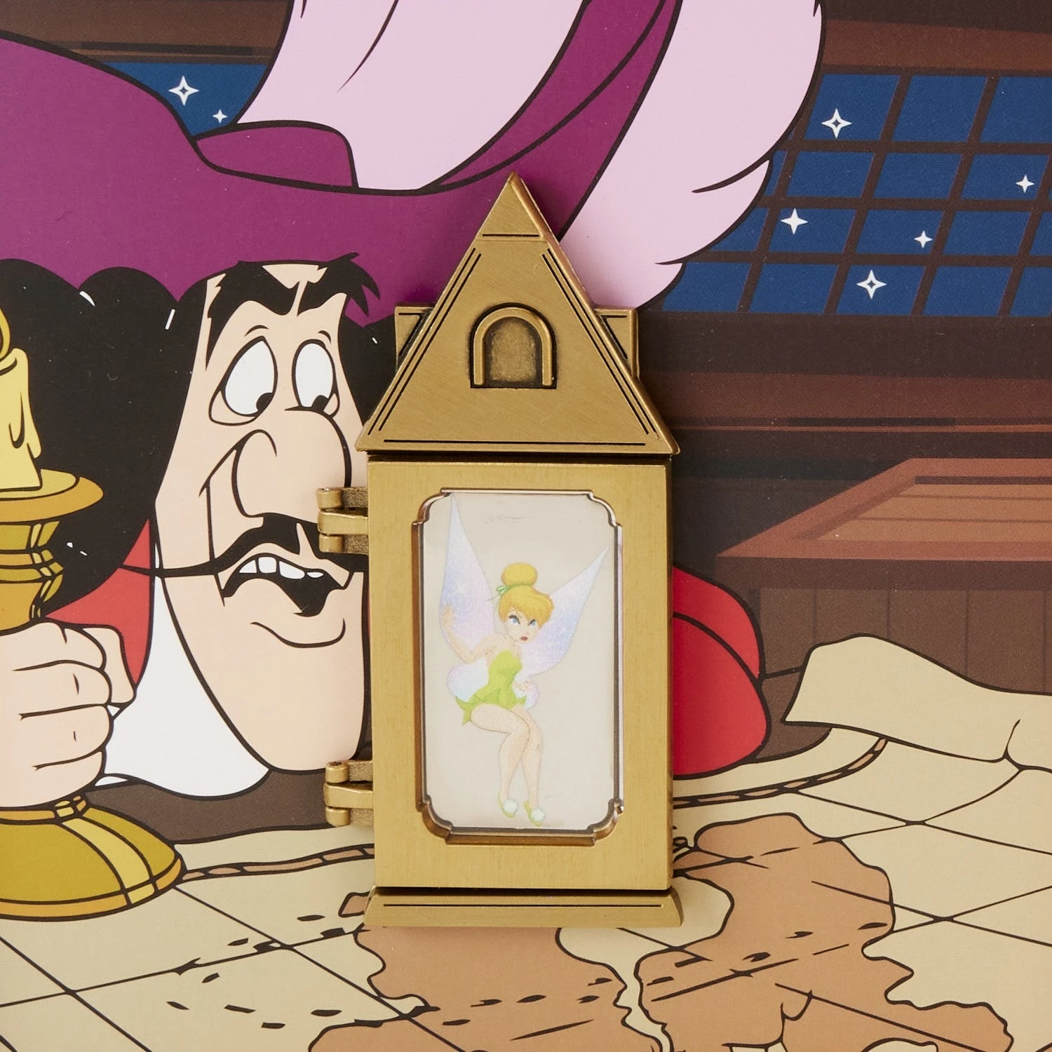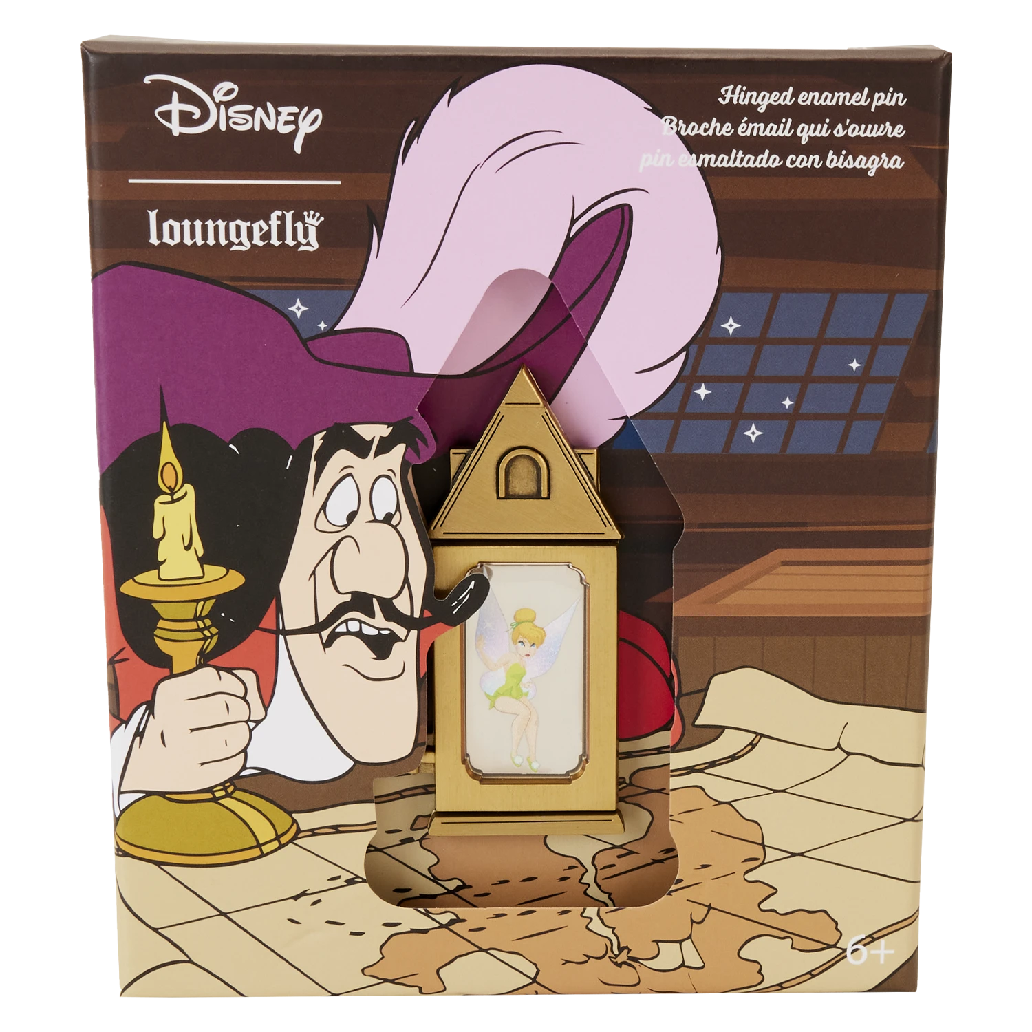 Captain Hook is on the hunt for Peter Pan’s hideout, and there’s one fairy who can light the way! Capture the magic of this animated classic with the Loungefly Tinker Bell Lantern Collector Box Pin. Trapped inside a lantern, Tinker Bell waits for her chance to escape beneath the pin’s hinged door. Turn down the lights to see Tinker Bell glow in the dark! This enamel pin adds a touch of whimsy to any outfit or bag and is perfect for fans looking to keep one of their favorite characters close.
