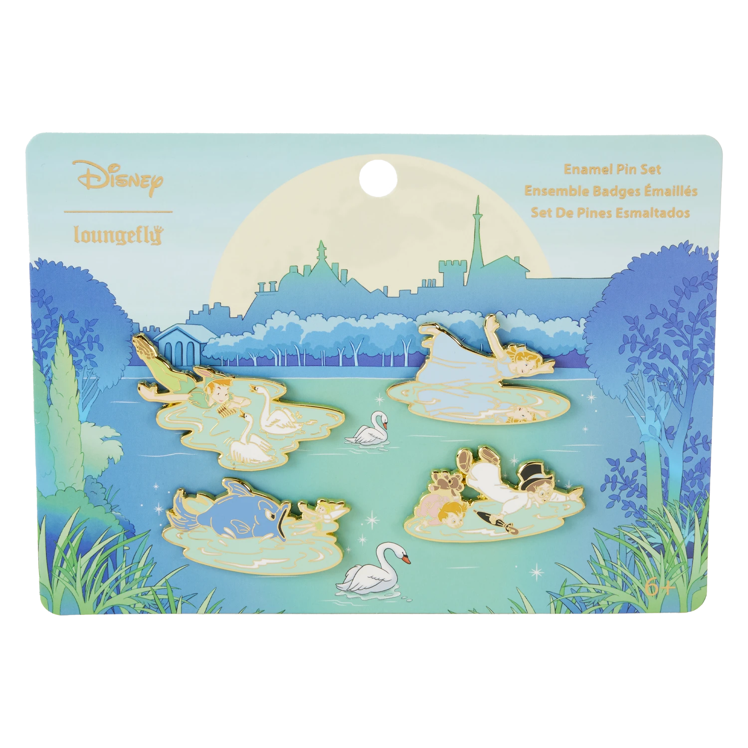 The happiest thoughts can make your adventures take flight! Set your sights on the Loungefly Peter Pan You Can Fly 4PC Pin Set, where the Darling siblings soar to Neverland with the help of their new friends. In this exclusive set, you’ll find enamel pins of Peter Pan riding some swans, Wendy flying over her reflection, John and Michael swooping along the river, and Tinker Bell escaping from a hungry fish. These accessories add a touch of whimsy to any outfit or bag and will keep you company throughout your travels.