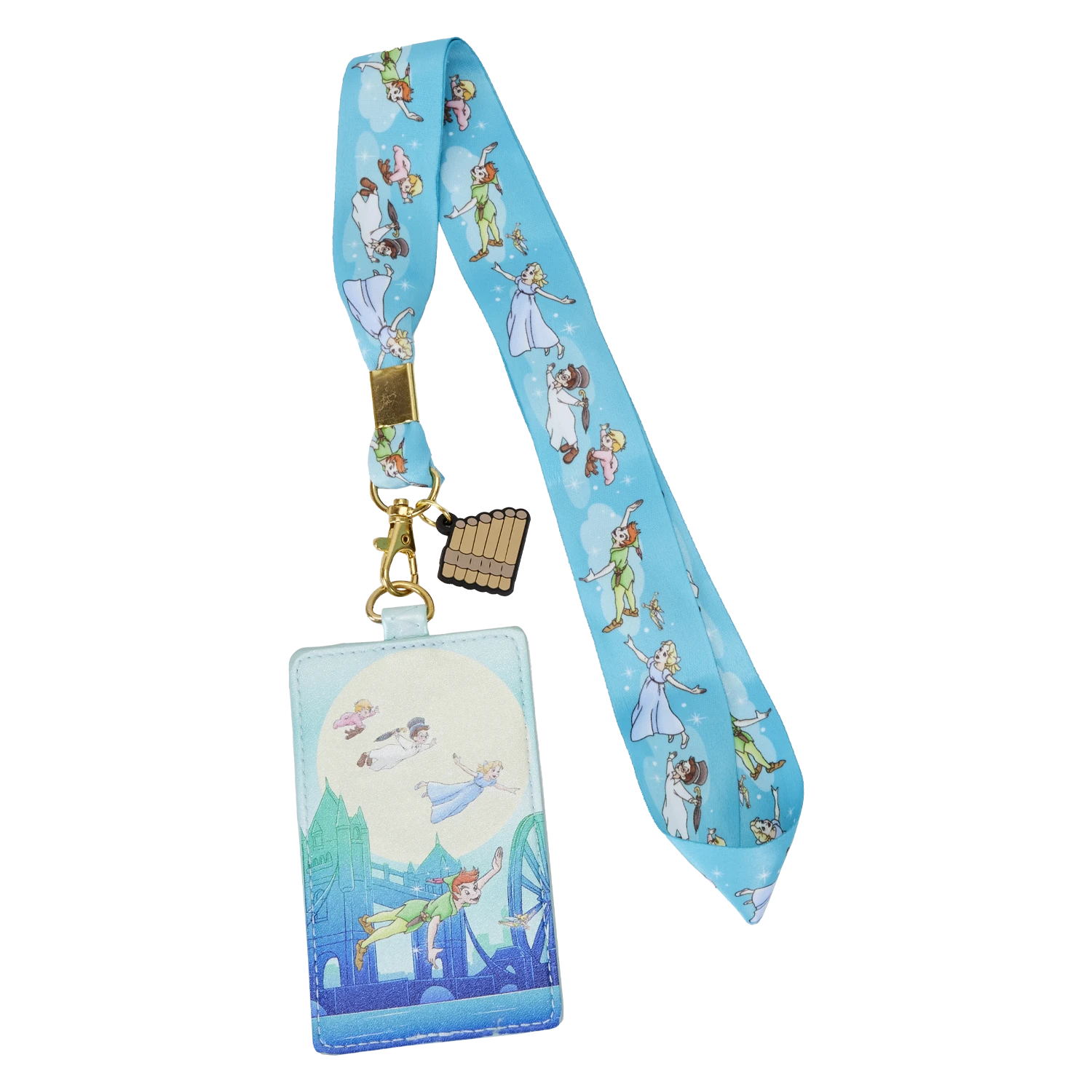 The happiest thoughts can make your adventures take flight! Set your sights on the Loungefly Peter Pan You Can Fly 4PC Pin Set, where the Darling siblings soar to Neverland with the help of their new friends. On the front of the card holder, Peter Pan and Tinker Bell lead Wendy, John, and Michael across the London skyline under a full moon. A clear slot for holding ID appears on the reverse side, which shows some river scenery on the lining. Up above, a flute-shaped charm accompanies the lanyard’s all-over print of Peter and the Darling children. This accessory adds a touch of whimsy to any outing and will keep your belongings safe throughout your travels.