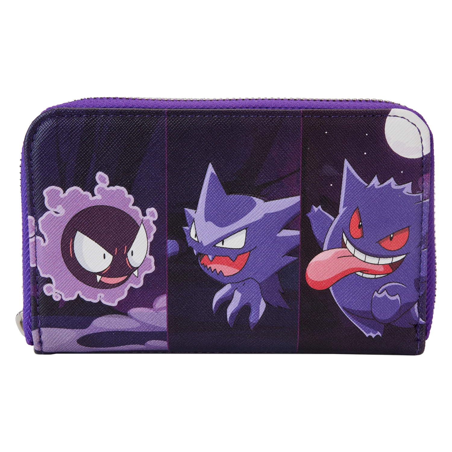 Don’t ghost the chance to evolve your style! Level up with our Loungefly Pokémon Gengar Evolution Zip-Around Wallet. This dark purple accessory features the evolution of Gengar on the front: Gastly, Haunter, and Gengar. Their faces and forms come to life in debossed detail. On the back, all three evolutions of Gengar make an encore appearance in shadow form. Inside, you’ll find approximately four slots for holding cards and one clear slot for displaying your ID. Secure and organize your valuables for the day, so you can play on!