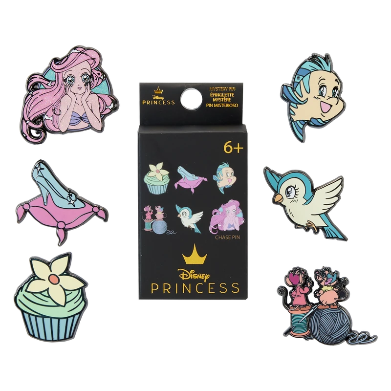 Star-struck by magical stories? Get drawn into our Loungefly Princess Manga Style Mystery Box Pins! Enamel pins include a cupcake in the colors of Tiana’s dress, Flounder, a bluebird, Jaq and Gus on a spool of thread and ball of yarn, and a glass slipper. Pins are sold individually and in mystery box packaging. There’s a 1 in 12 chance you may find the glitter chase of Ariel. Show off your favorite fandoms and embrace new adventures in style!