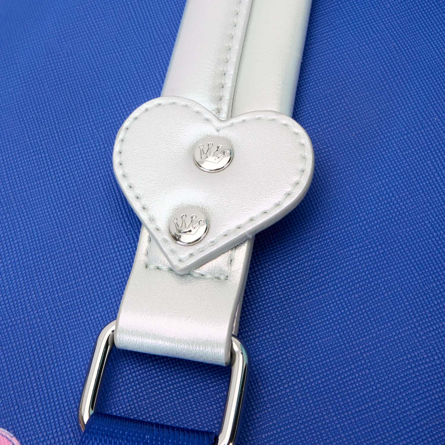 Star-struck by magical stories? Get drawn into our Loungefly Princess Manga Style Mini Backpack. This royal blue backpack features several Princess characters printed in manga style. On the front, a die-cut layer displays manga-style images of Cinderella, Tiana, and Snow White, wide-eyed with wonder, surrounded by printed star sparkle images and hearts. Objects associated with each Princess also appear, including a cottage, a glass slipper, and the candlestick with silverware that Ariel finds in the grotto. Just behind this die-cut layer, you’ll find a hidden zipper pocket for securing smaller items on your journeys. Above the die-cut layer, you’ll find two more Princess characters: Belle, who is holding a book, and Ariel. More printed star sparkle images take shape, along with the Enchanted Rose inside a glass dome, and a cupcake decorated in Tiana’s dress colors. The side panels include Jaq and Gus on a spool of thread and ball of yarn. Colorful hearts and silver foil star sparkles surround them. On the other panel, Flounder appears amid hearts and star sparkles as well. On the back, the following Princess characters make an encore manga-style appearance inside heart shapes: Ariel, Belle, Tiana, Snow White, and Cinderella. A textured pattern, over the entire bag, makes the prints appear more realistically “manga.” Silver metallic straps add a pop of complementary color. Pack just what you need for the day to embrace all kinds of adventures.