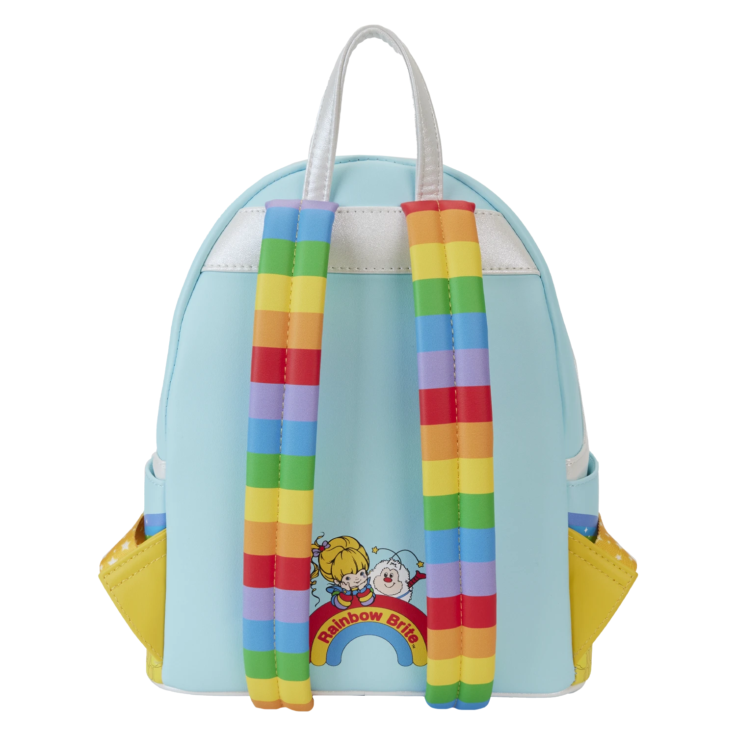 The power of the rainbow is yours! Bring color and happiness wherever you go with the Loungefly Rainbow Brite™ Castle Group Mini Backpack. On the front, Rainbow Brite, Starlite, and Twink travel down a rainbow that leads to Rainbow Land. Color Castle takes shape on the front zipper pocket, where Sprites peek through the castle windows as the Color Kids appear below. Brightly colored Sprites appear on the bag’s side pockets, and Rainbow Brite makes an encore appearance with Twink beneath the bag’s rainbow-striped shoulder straps. This mini backpack makes a shining addition to any outfit and is sure to fight off any forces of darkness and gloom.