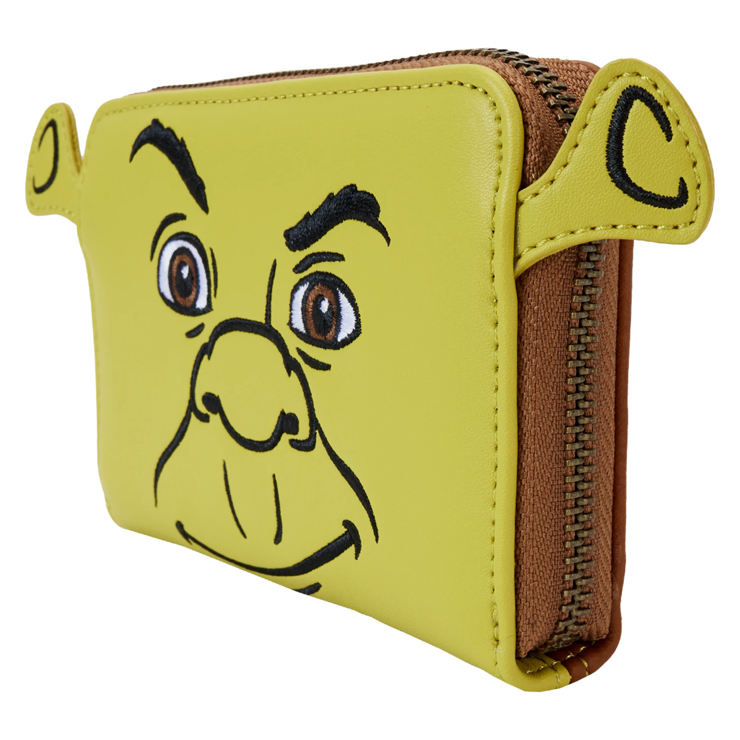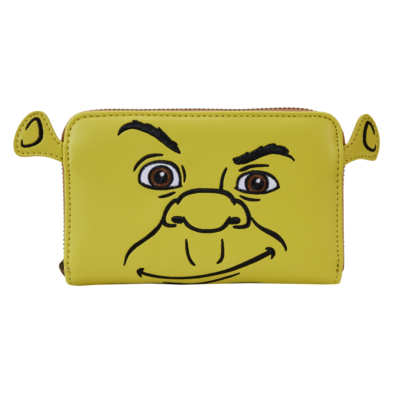 Feeling swamped? Secure your valuables for the day and escape for adventures with our Loungefly Shrek Keep Out Cosplay Zip-Around Wallet. On the front, Shrek’s face appears in applique and embroidered details, his ears rising up over the top. On the back, there’s a printed “Keep Out” sign, reminiscent of the ones in front of his house in the movie. Inside, you’ll find four slots for holding cards and one clear slot for displaying your ID. A die-cut shape of Shrek’s head, on the clear slot, adds a touch of fun. Stay in character while showing off your fandom, whether you’re traveling far, far away or closer to your neck of the swamp.