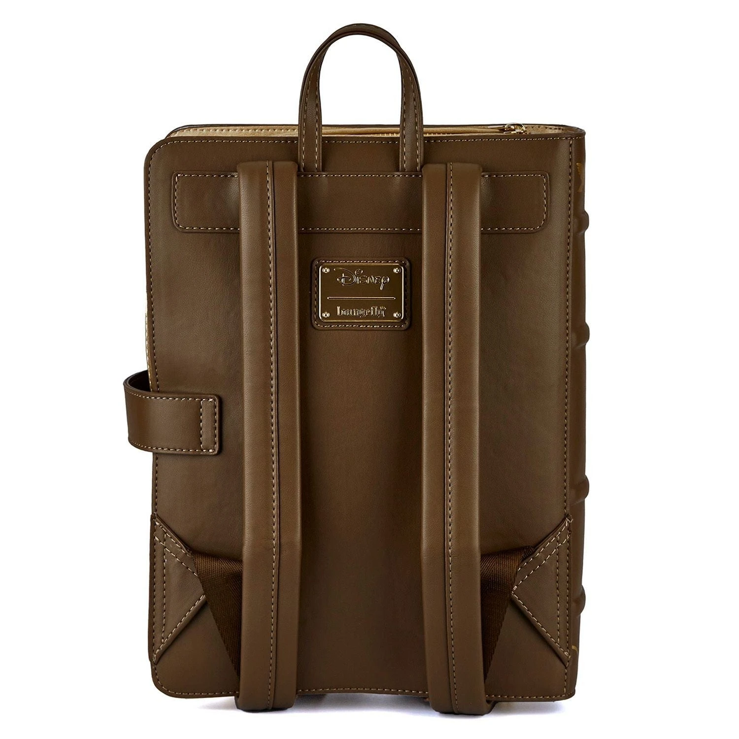 The Loungefly Sleeping Beauty Collector Pin Backpack is made of vegan leather (polyurethane). Bag has adjustable shoulder straps, sturdy metal hardware, and features: gems, foil, perforated, embroidered, debossed, and printed details. Take note of the coordinating design of the inside lining fabric.