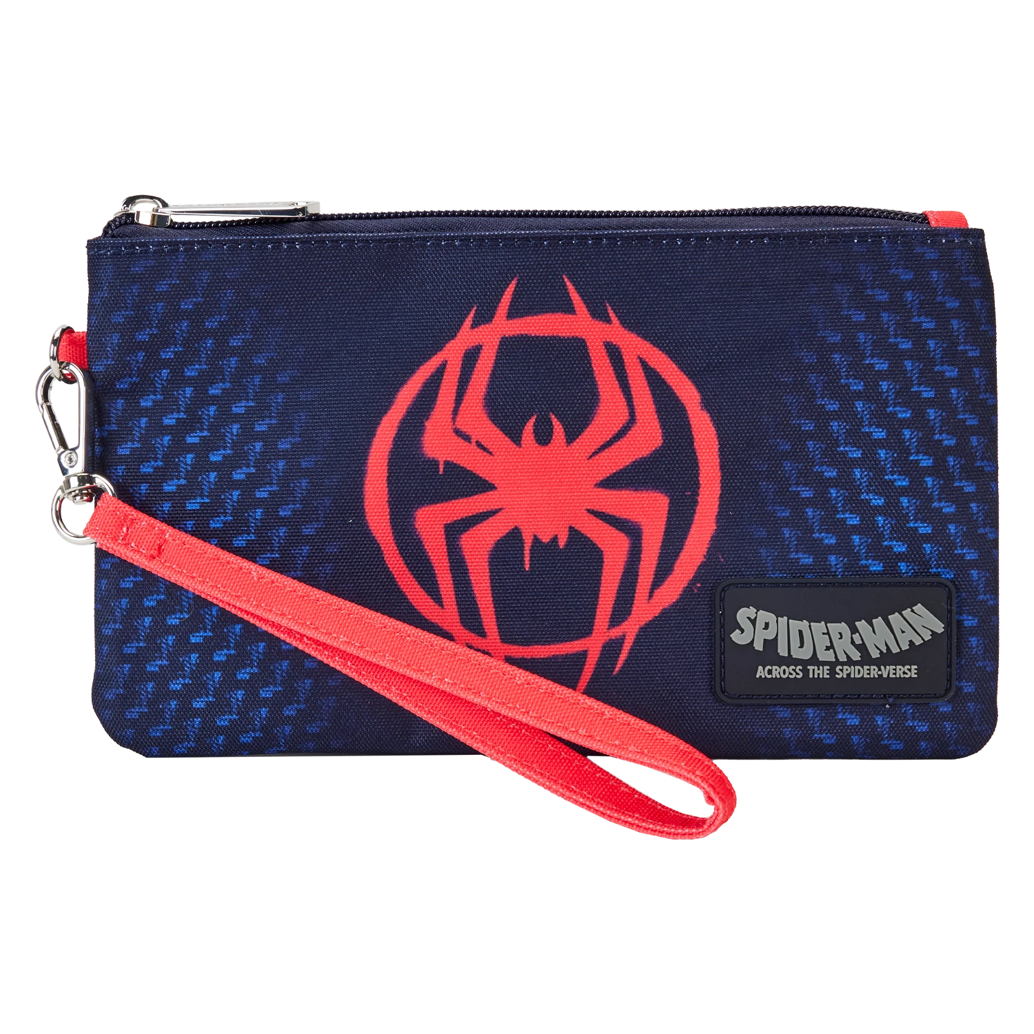 Let’s do this one more time! Bitten by a radioactive spider, Miles Morales takes the role of Spider-Man on the Loungefly Spider-Verse Miles Morales Nylon Wristlet Wallet. On the front, a graffiti-style spider symbol recreates the look of Miles’ hero suit. On the back, Miles swings from a spiderweb while using his powers. Unzip the wallet to reveal four slots for holding cards or ID. This accessory makes a heroic addition to your next mission and will keep your belongings safe on your interdimensional travels.