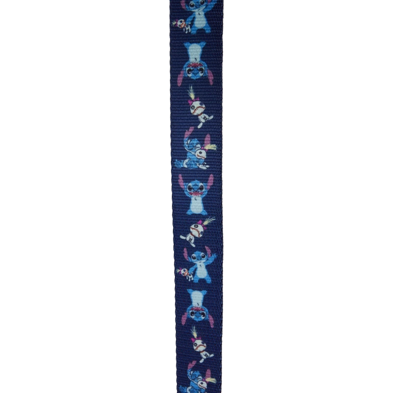 The Stitch and Scrump Dog Leash is made with durable nylon material and features printed details. Leash includes padded handle for comfort and includes sturdy metal hardware.