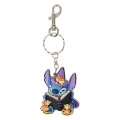 Gather ‘round, it’s time to read a scary story! This loveable alien has gathered his friends for a costume party on the Loungefly Stitch Halloween Keychain. Dressed in a bewitching outfit, Stitch tells a tale to some ducklings dressed in pumpkin costumes. Bring your favorite characters with you on your next adventure by adding an extra storytelling moment to your bag or key ring.