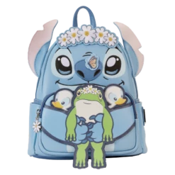 New beginnings are in bloom! Embrace a season of fresh starts with the Lilo & Stitch Springtime Stitch Cosplay Mini Backpack. This accessory takes the shape of the loveable alien as he makes flower crowns for all his friends. Wearing a daisy crown, embroidered details highlight Stitch’s facial features as a butterfly rests on his nose. Down below, Stitch holds a frog and ducklings on the front zipper pocket. An enamel daisy zipper charm completes the scene. Turn the bag around to see the ducklings in their crowns on the bag’s side pockets while the frog appears on the bag’s back. This mini backpack has plenty of room to carry your belongings and makes an adorable companion to any outing with friends.