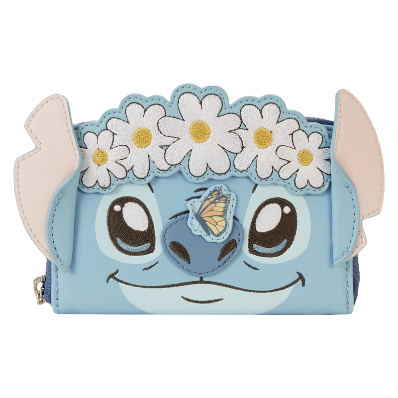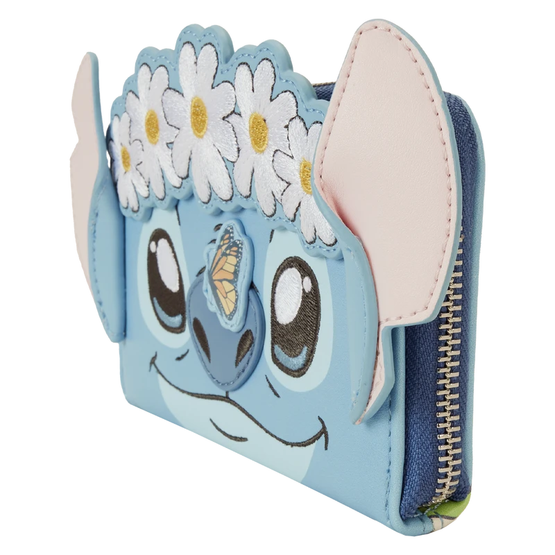 New beginnings are in bloom! Embrace a season of fresh starts with the Lilo & Stitch Springtime Stitch Cosplay Zip Around Wallet. On the front, the loveable alien wears a crown of daisies as embroidered details highlight his facial features. Look closely and you’ll see a butterfly perched on his nose! On the back, a frog friend wears a flower crown. Open the wallet to find four slots for holding cards and clear slot for holding ID. This wallet has plenty of room to carry your belongings and makes an adorable companion to any outing with friends.