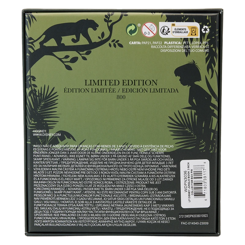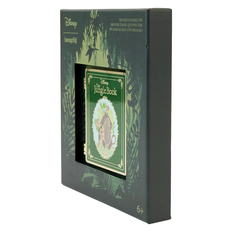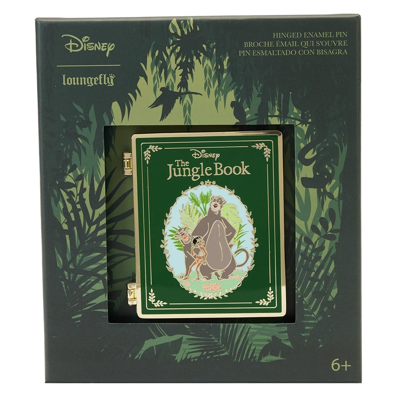 Another adventure for the books! Display our Loungefly Disney The Jungle Book 3-Inch Collector Box Pin and let the fun begin. This beautiful interpretation of a Disney classic book features a “front” cover with gold lettering. Cherished characters gather in the jungle, including Mowgli, Baloo, and Bagheera. Open the book, and you’ll find delightful, in-house, original art drawn as illustrations on pages. You might see key moments from the story involving Mowgli, Kaa, Shere Khan, Baloo, Hathi Jr., and more. It’s the perfect way to show off your fandom and hold your favorite animated moments close.