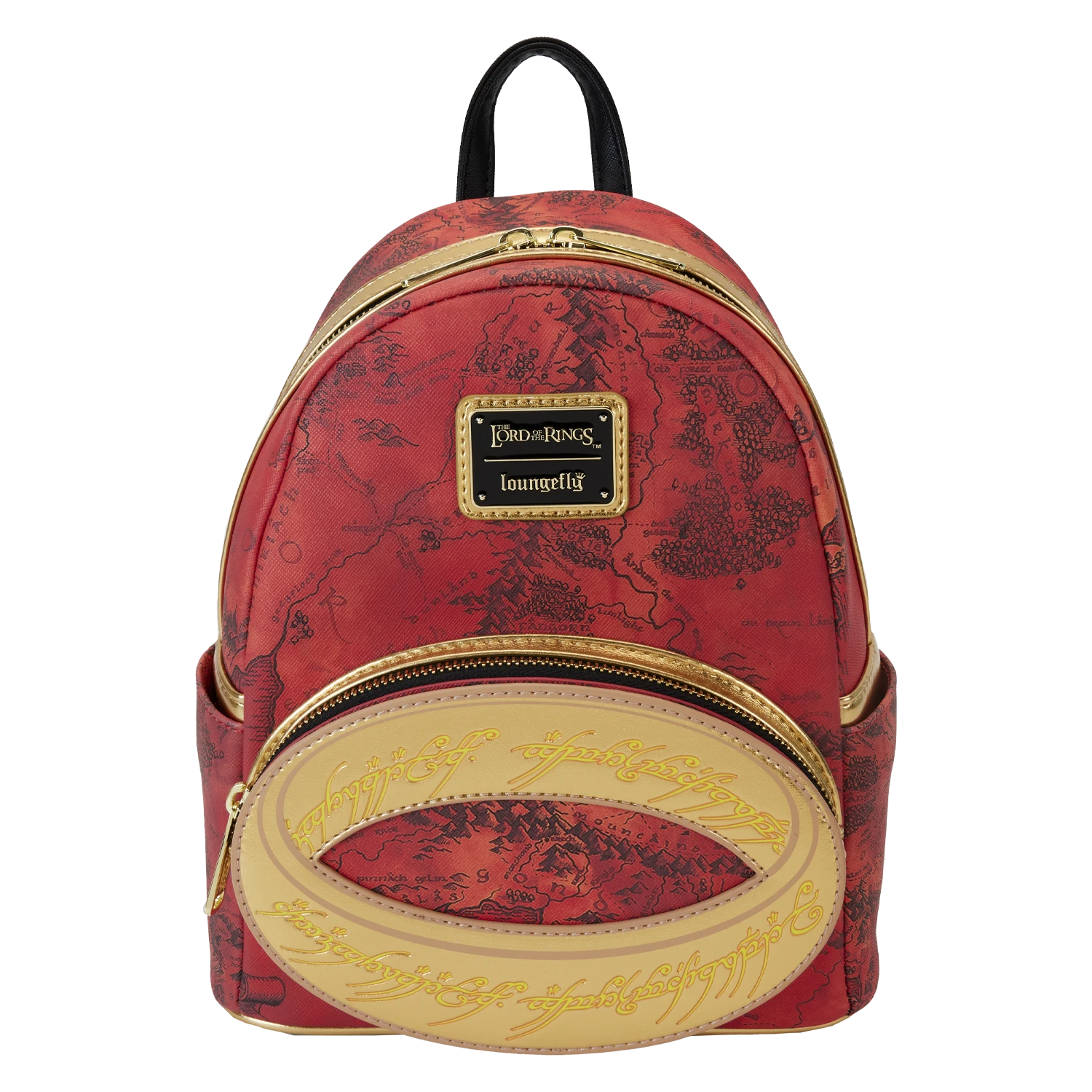One does not simply travel to Mordor unprepared. Pack your bags and hit the road with the Loungefly Lord of the Rings™ the One Ring Mini Backpack. On the front, the One Ring shines with metallic details on the bag’s rounded zipper pocket. Turn down the lights to see its Elvish inscription emit a powerful glow! Up above, a red-tinted map of Middle Earth covers the bag’s front and side pockets. Those tempted to turn the bag around will find the Eye of Sauron lurking on the back, and the Ring’s inscription appears again on the shoulder straps. This mini backpack has plenty of room to store your quest essentials and will keep your belongings safe on any journey.