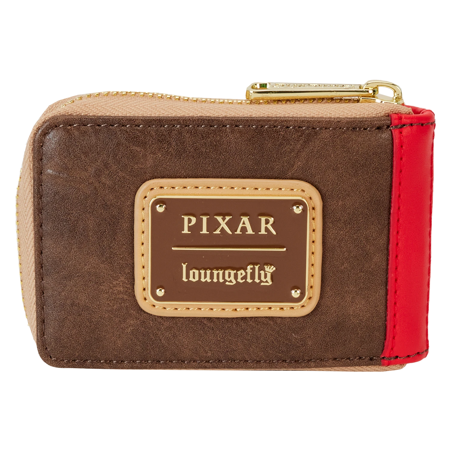 The Loungefly Pixar Up 15th Anniversary Adventure Book Accordion Wallet is made of vegan leather (polyurethane). Wallet zips closed with shiny gold hardware. Additional features include applique, debossed, embroidered, and printed details. Take note of the coordinating inside lining.