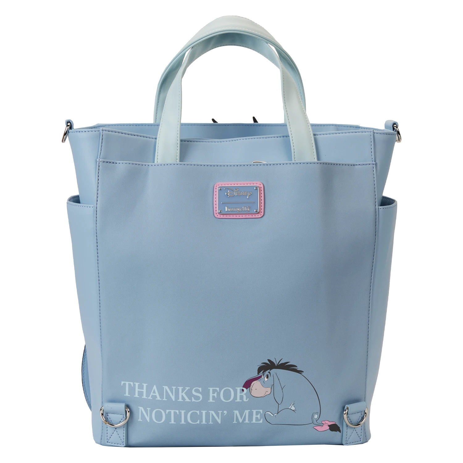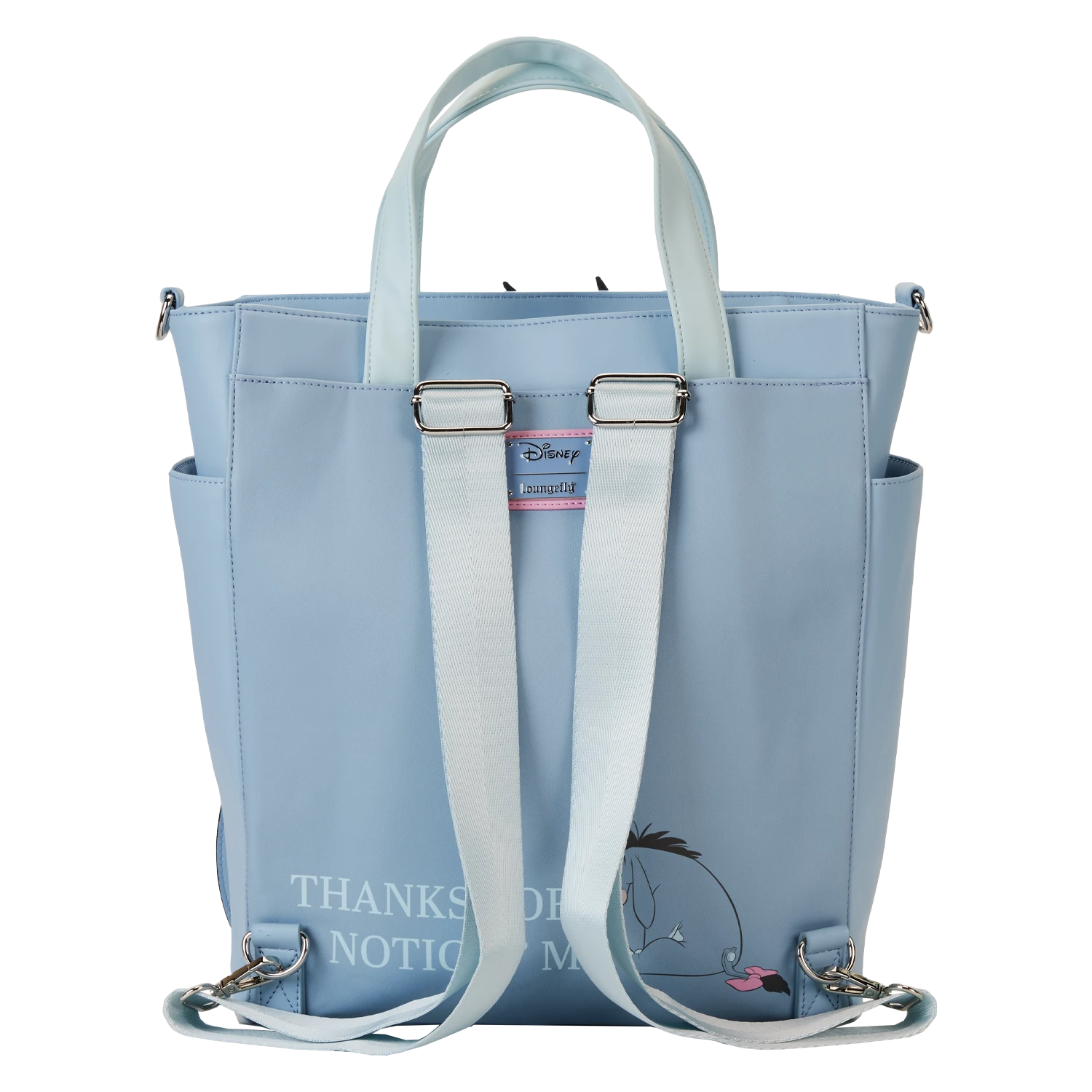 Chase the gloom away on your trip to the Hundred Acre Wood. Our Loungefly Winnie the Pooh Eeyore Convertible Tote Bag is ready to lift your spirits. On the front of this roomy tote, an applique of Eeyore appears, with embroidered details on his facial features. His applique ears stick out on the sides as well. Side pockets allow you to hold smaller items on your journeys, and on the back, Eeyore makes an encore appearance as a printed image, with the words “Thanks for Noticin’ Me” next to him. An applique of Eeyore’s tail bow adds a fun touch to the adjustable strap. This tote’s larger size allows you to carry all you might need for a day trip, including a laptop. Plan for adventures in the Hundred Acre Wood, or simply turn everyday outings into wonderful new journeys.
