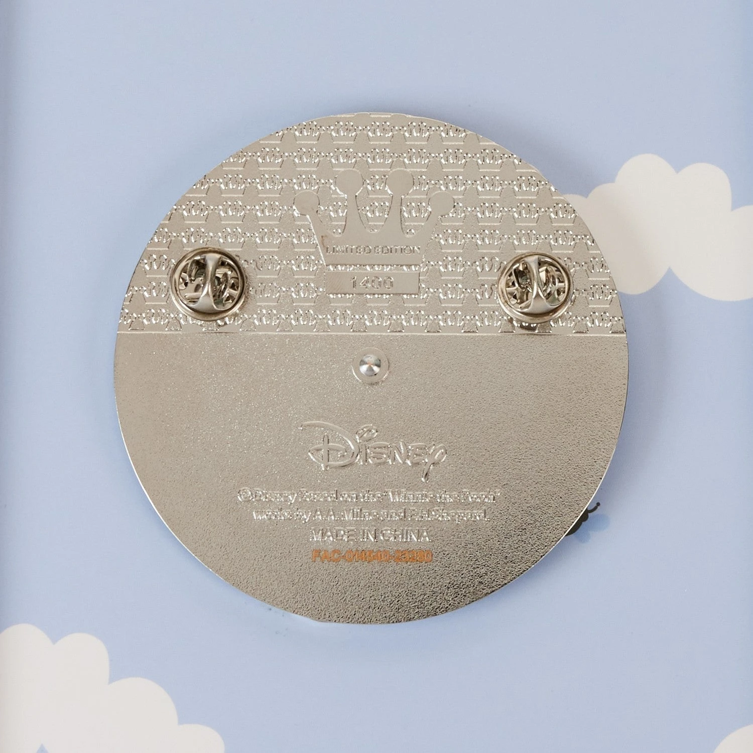 Pin details include layering, enamel, and print, as well as a sliding mechanism. The silver-colored backing has the signature Funko crown debossing as well as the embossed crown on the back, noting the limited-edition piece count.