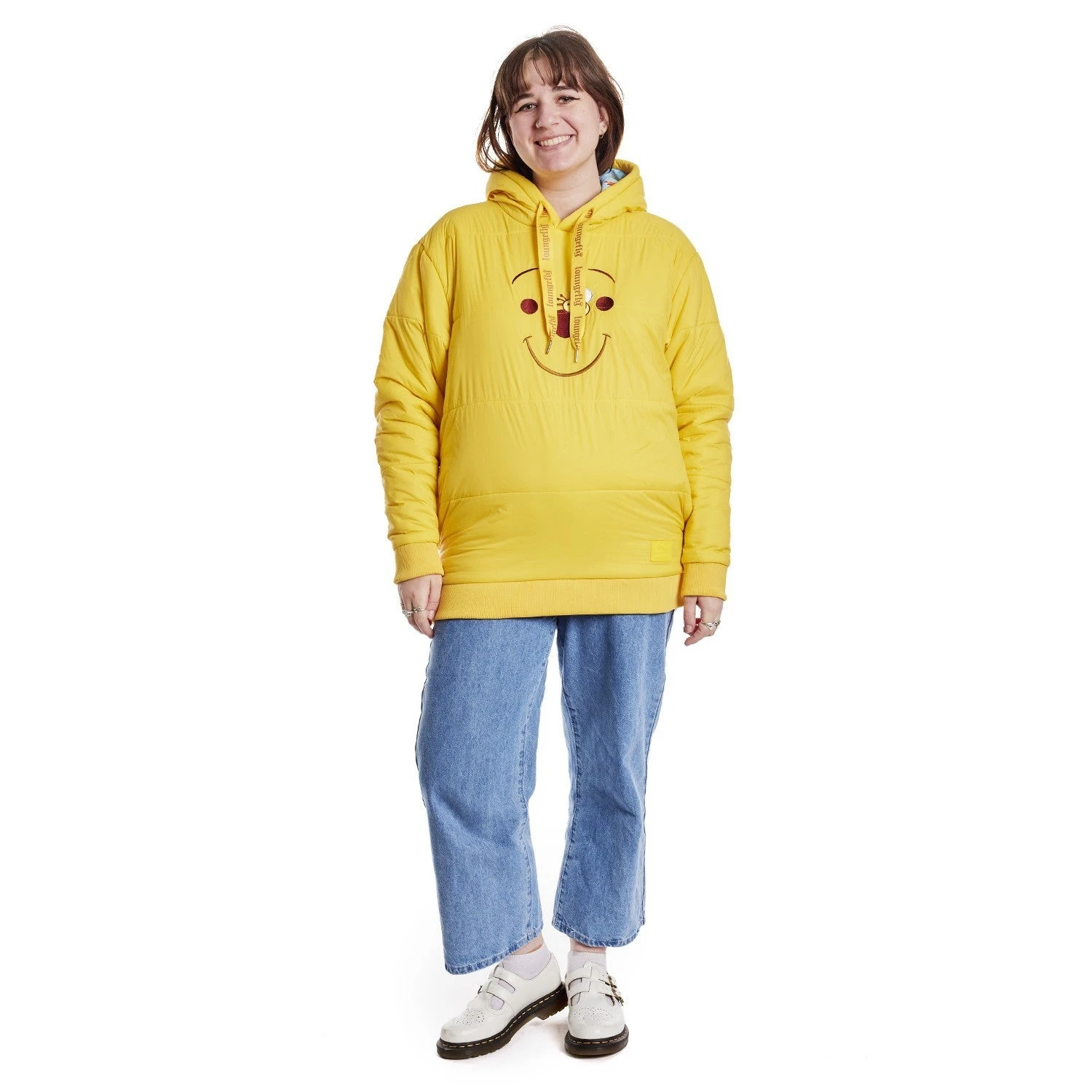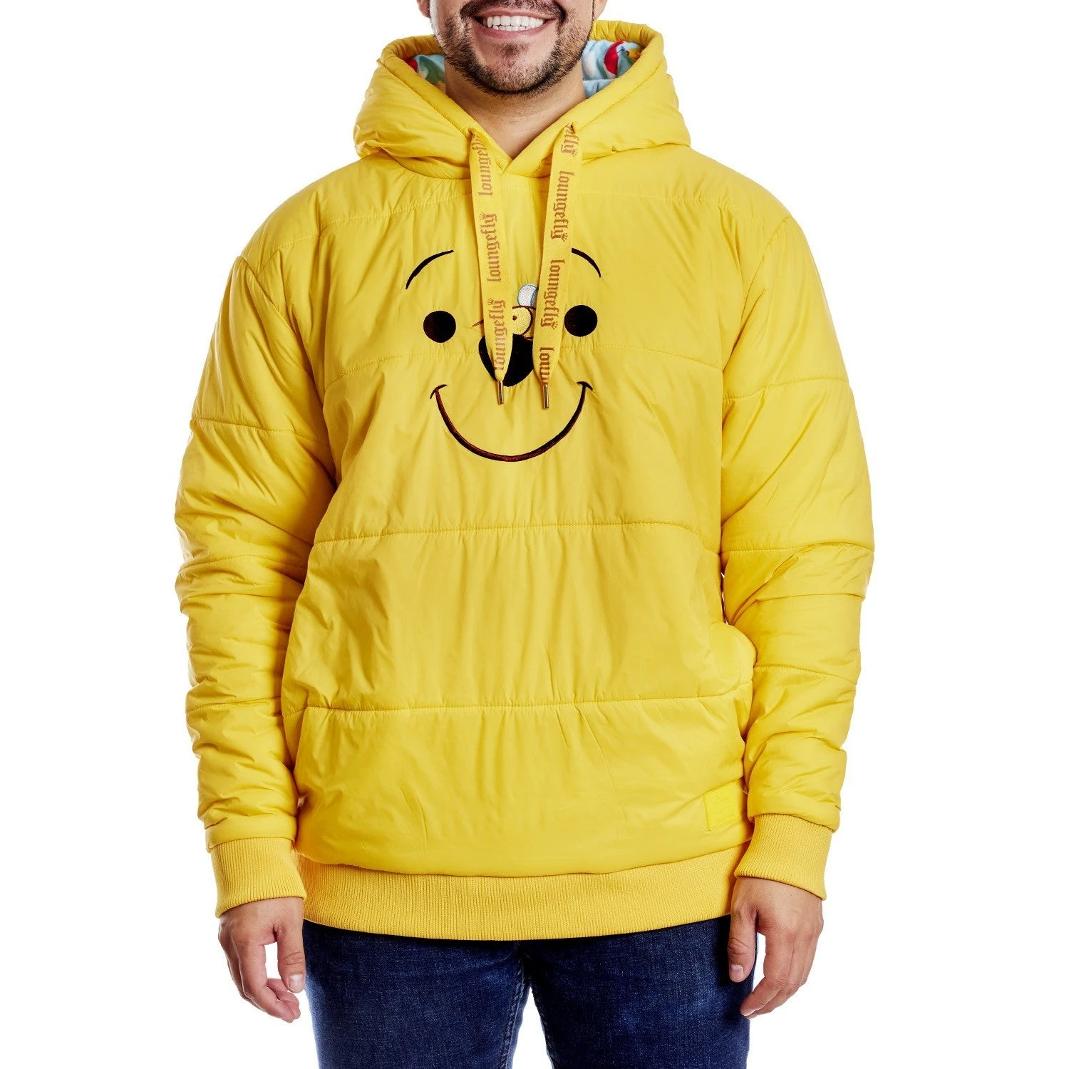 When the forecast calls for rain in the Hundred Acre Wood, bring out the bright yellow sunshine with our Winnie the Pooh Puffer Jacket Unisex Hoodie. This quilted nylon hoodie, in yellow, features Winnie the Pooh, his smiling face brought to life by embroidery details. And it seems a bumblebee has landed on his nose! On the hoodie, Winnie the Pooh’s ears poke up at the top. When the weather turns chilly, warm your hands up in cozy side pockets. Make a splash in style with this sweet and comfy hoodie.