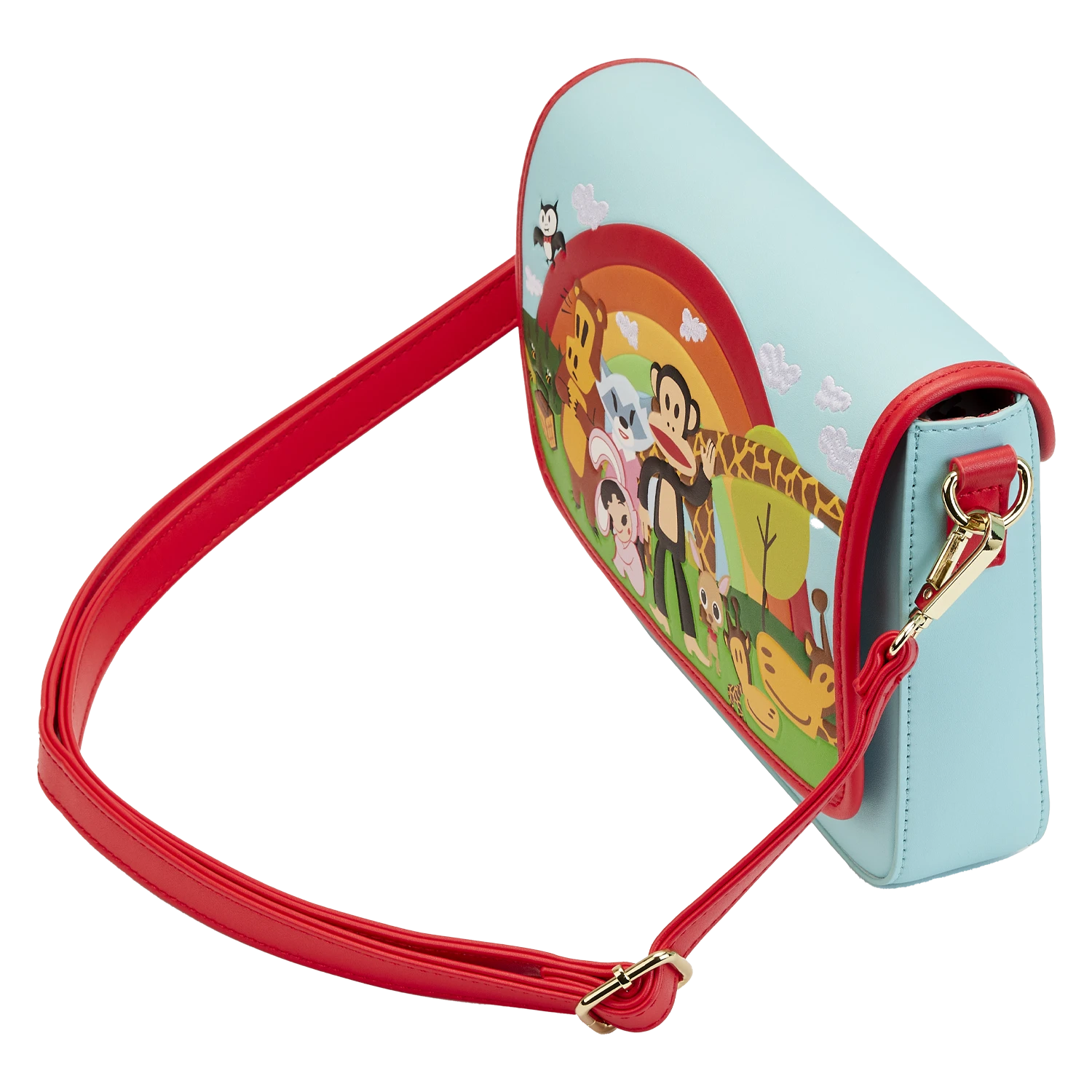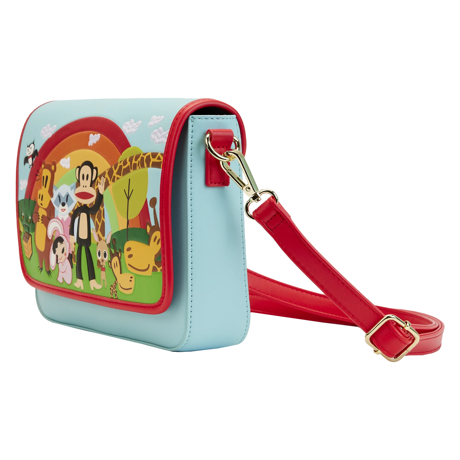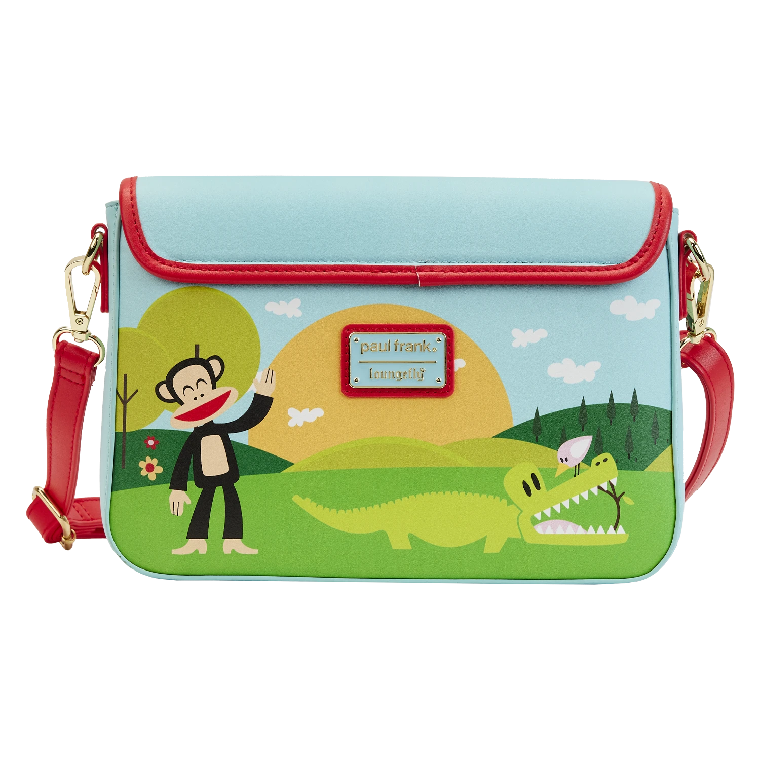 Heading to Planned Pines™ for a day of fun and adventure? There’s nothing but clear skies ahead when you bring along the exclusive Loungefly Paul Frank Rainbow Group Crossbody Bag. Against a rainbow backdrop, assembled on perfectly green grass, Julius™ and his friends welcome you. The front flap of this crossbody bag includes a number of fun familiar characters, including Tyrone™ the bat, Worry Bear™, Sheree™ the raccoon, Bunny Girl™, Chachi™ the chihuahua, Clancy™ the giraffe, and Cornelius™ (Clancy’s big brother). On the back, you’ll find Aku™ the alligator, bending a twig in his mouth, with a precariously perched pink bird on top. Julius makes a brilliant encore appearance as well. It’s the perfect accessory for daring to daydream, creating smiles, and having fun. Act fast to collect this exclusive accessory; supplies are limited.